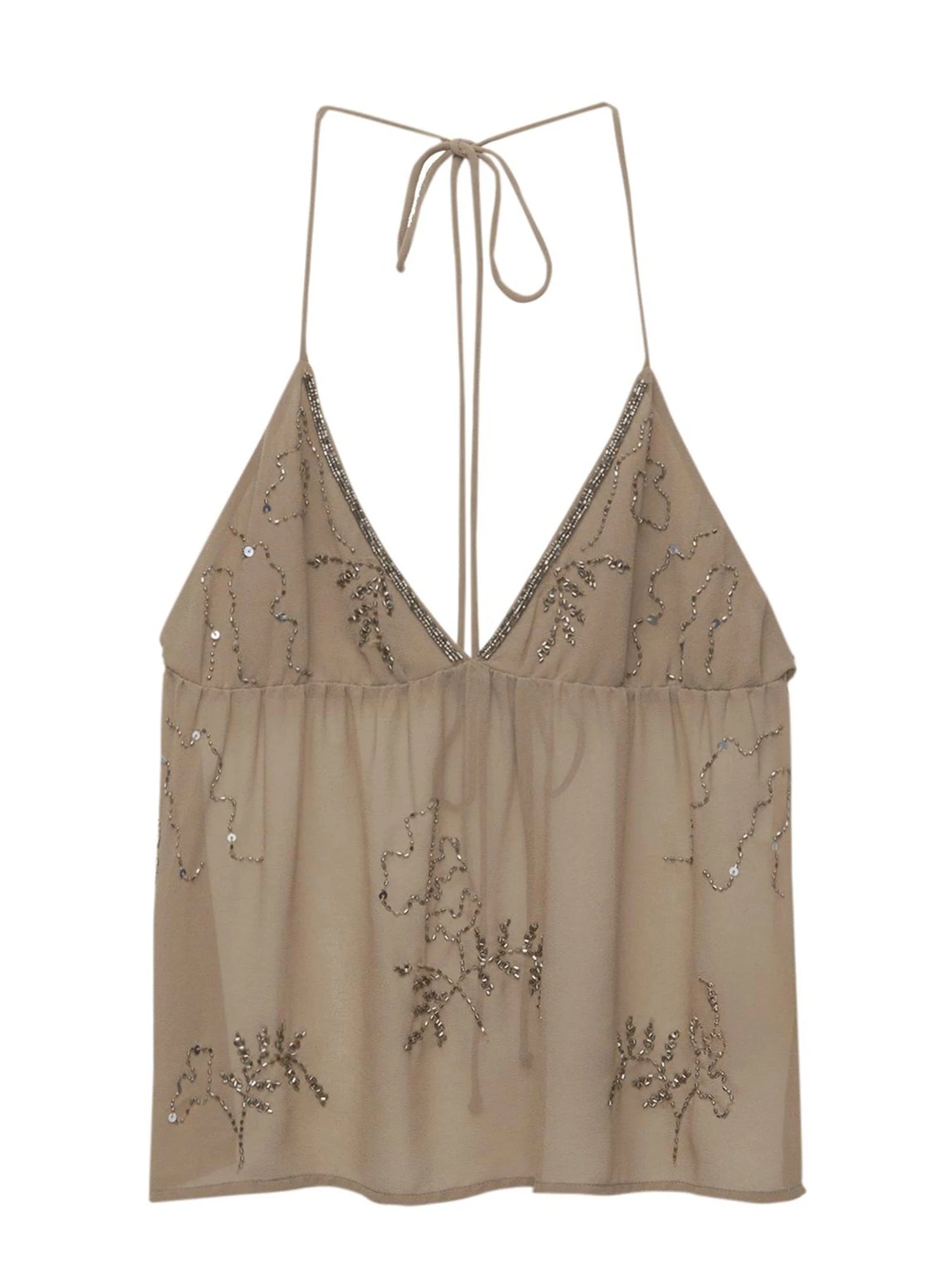Women Halter Top Tie-Up Sleeveless Tops Shiny Beaded Summer Vest For Beach Vacation Summer Party Daily Wear Streetwear