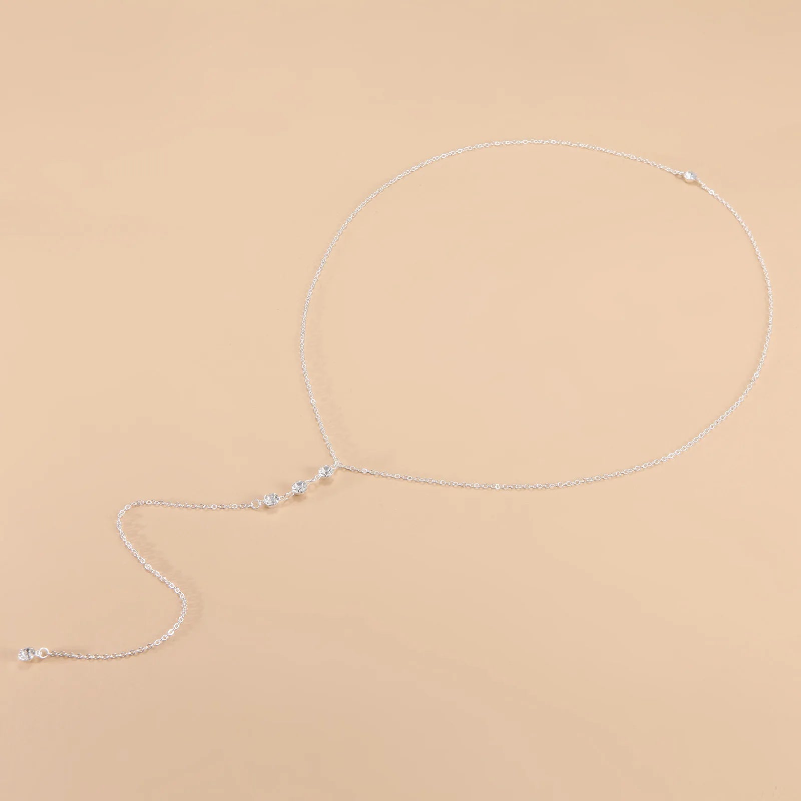 Women Long Necklace Body Sexy Chain Bare Back Gold Silver Crystal Rhinestone Pendant Chain Necklace Backdrop Beach Body Jewelry