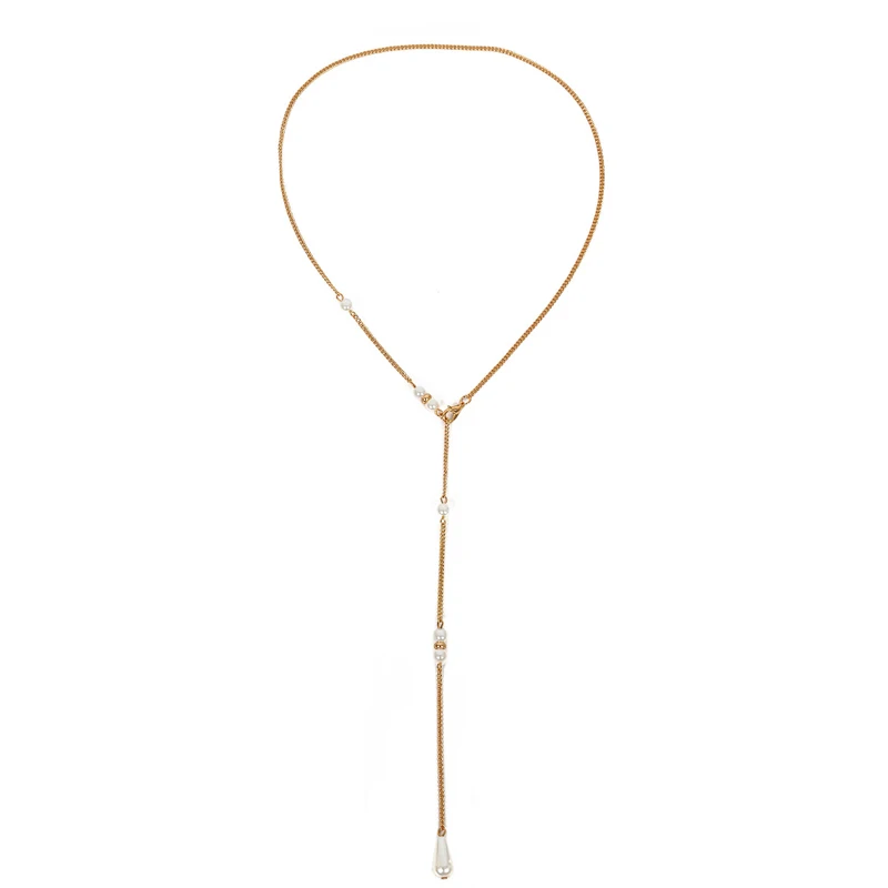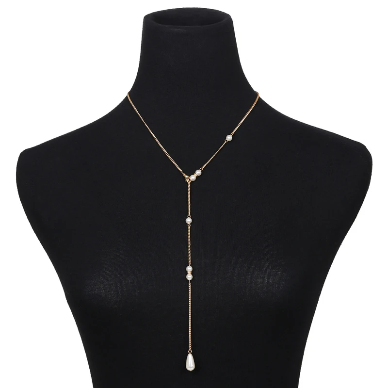 Women Long Necklace Body Sexy Chain Bare Back Water Drop Pearl Pendant Necklaces Backdrop Beach Body Jewelry Chain Necklace