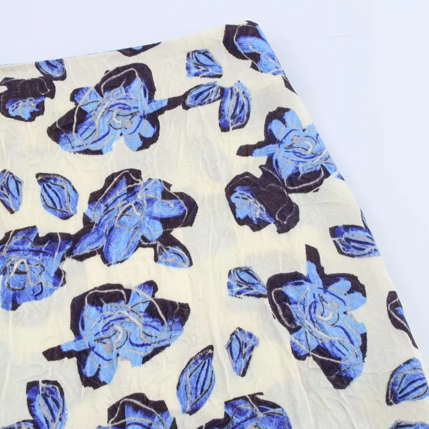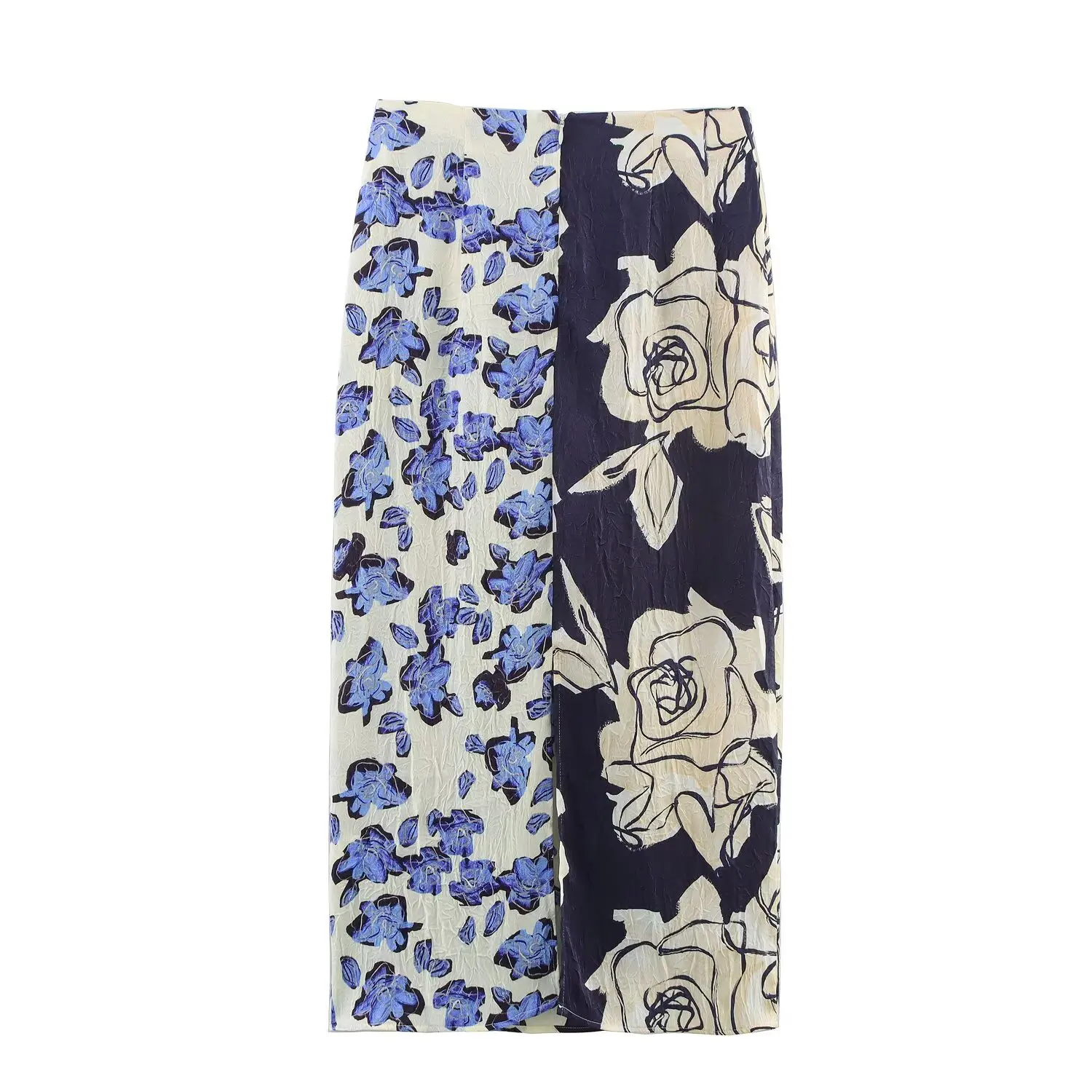 Women Skirt 2025 summer new ethnic style fashionable simple printed slit mid length pleated straight tube skirt