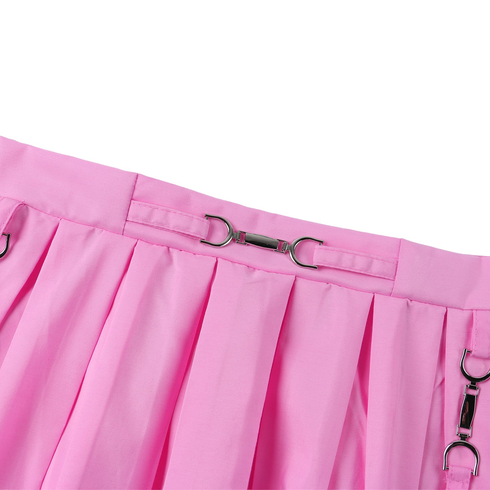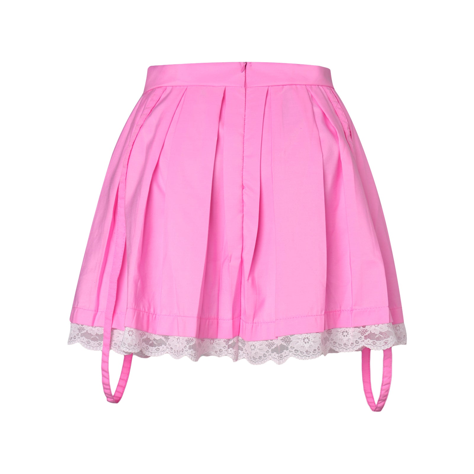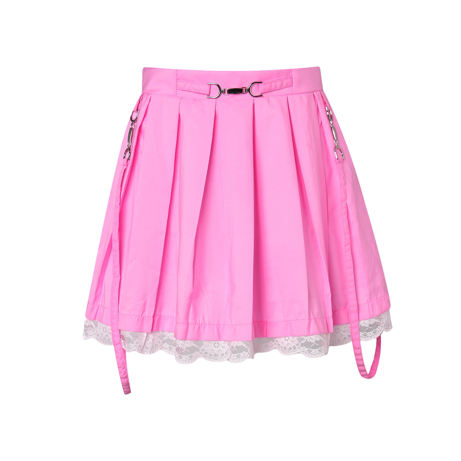 Women Skirts 2021 New Straps Decor Harakuju Lolita High Waist Mini Pleated Skirt School Girls Lace Hem Cute Streetwear