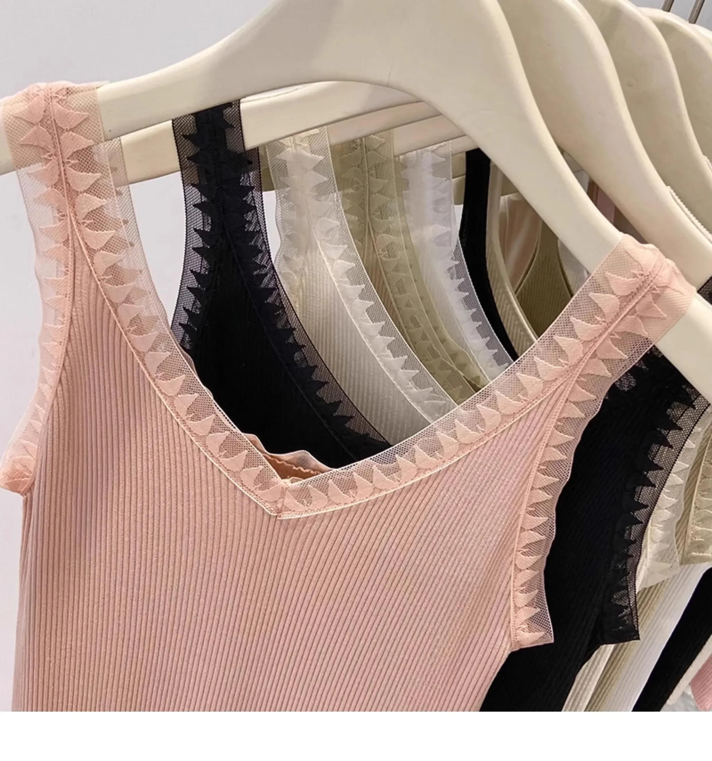 Women Summer Fashion Thin Knitted Undershirt Sleeveless Corset Top Half High Neck Comfortable Breathable Lace Tank Top 2025