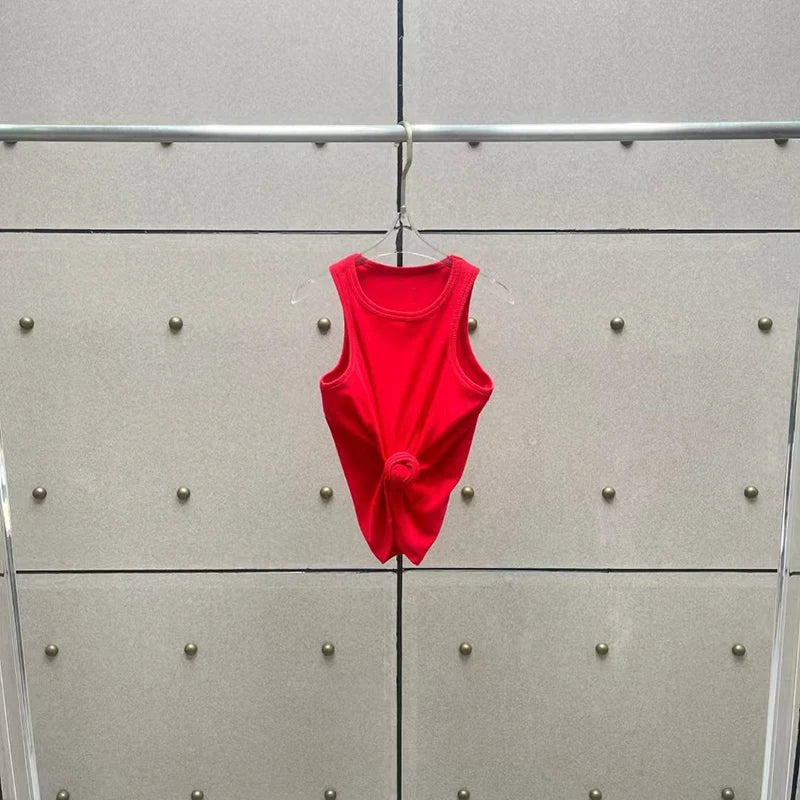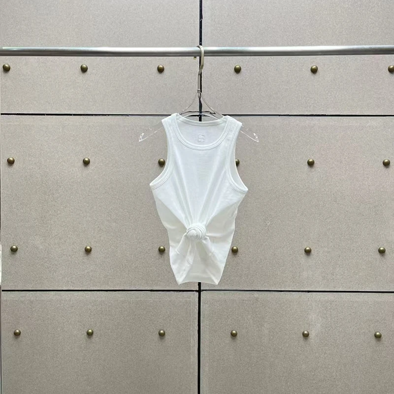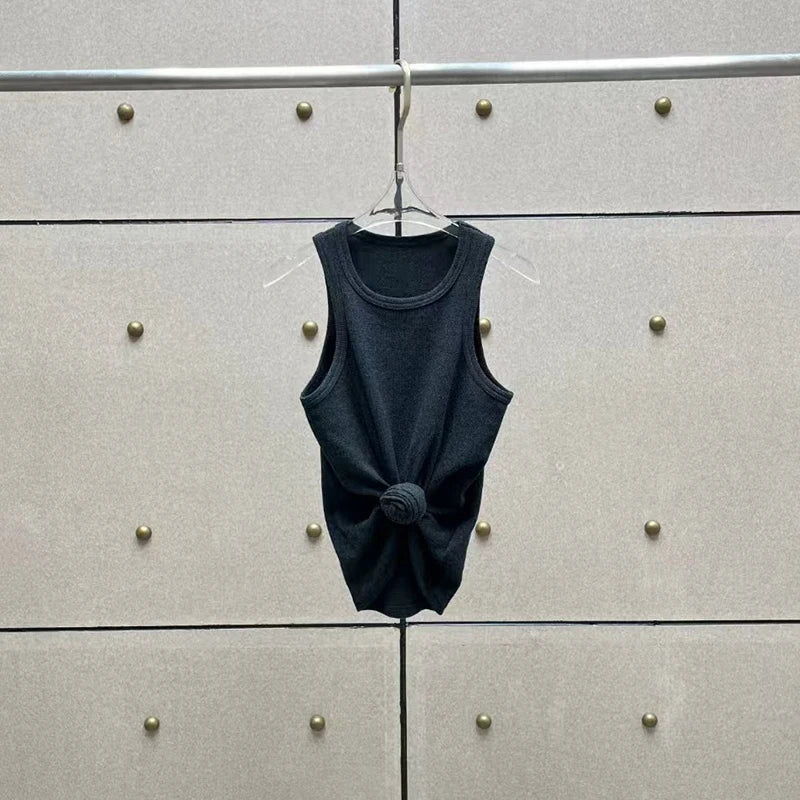 Women t-shirts New twisted flower knotted sleeveless top for summer 2025 Elastic slim pure cotton women's vest corset crop top