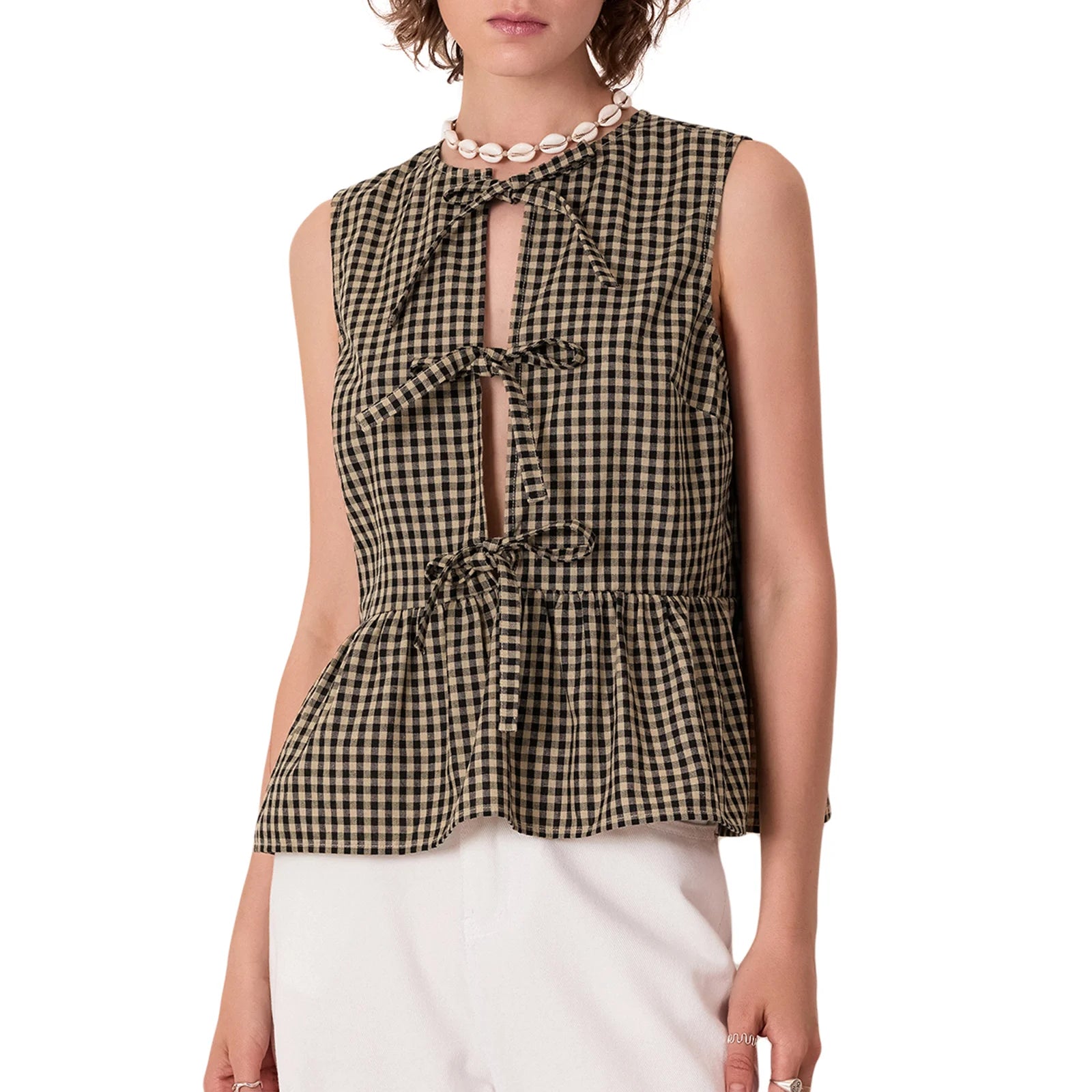 Women Tie Front Peplum Tank Tops Y2K Sleeveless Lace Up Ruffle Hem Babydoll Vest Shirts Cute Summer Going Out Crop Tops