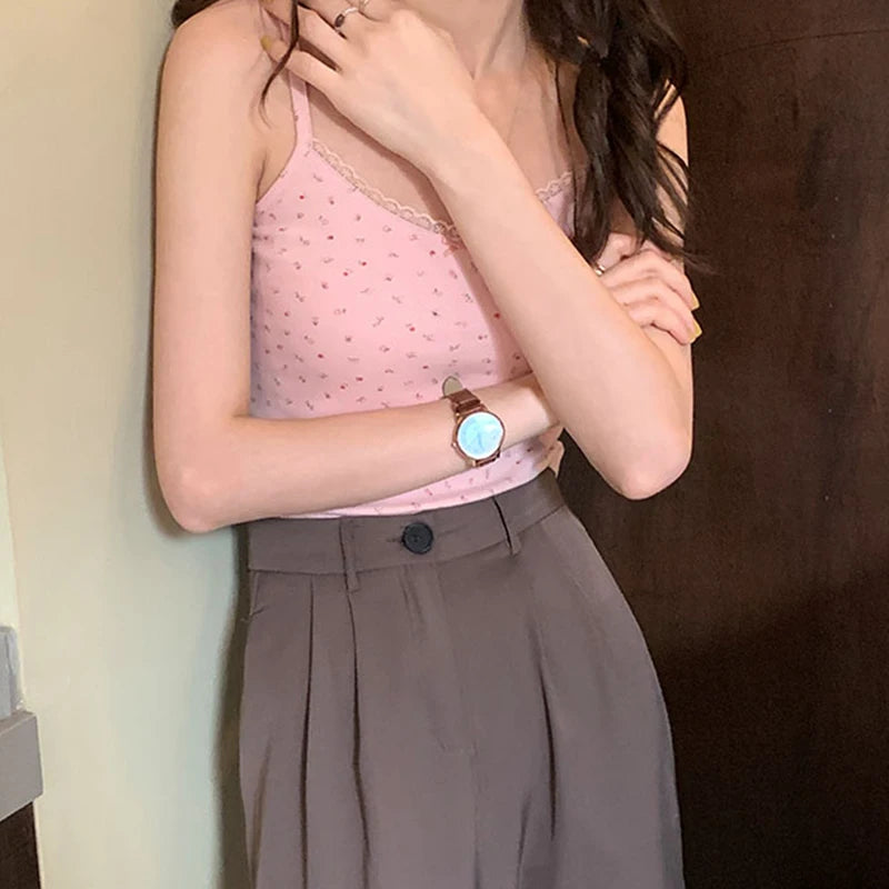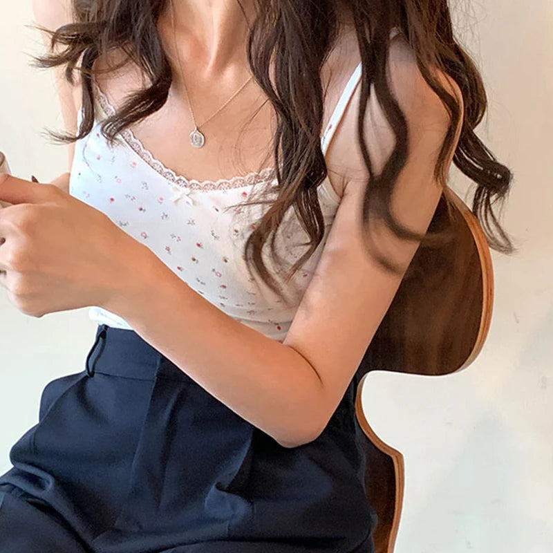 Women Tops Summer Girls Tops Short Slim Lace Sweet Print Crop Top Ladies Bottoming Cute Tops Top Mujer Top Femme