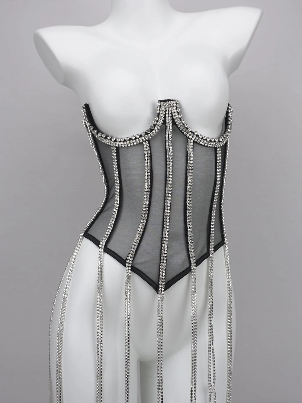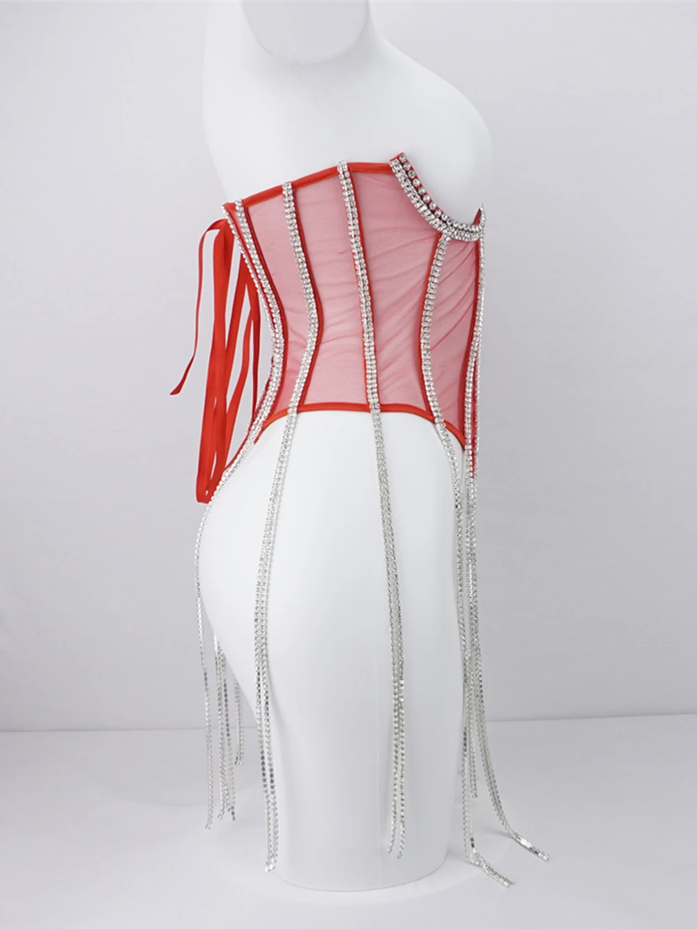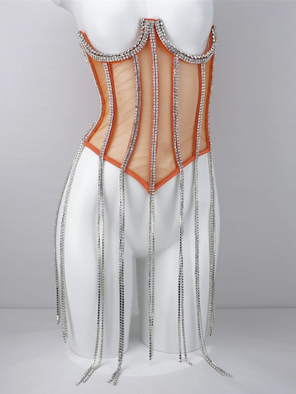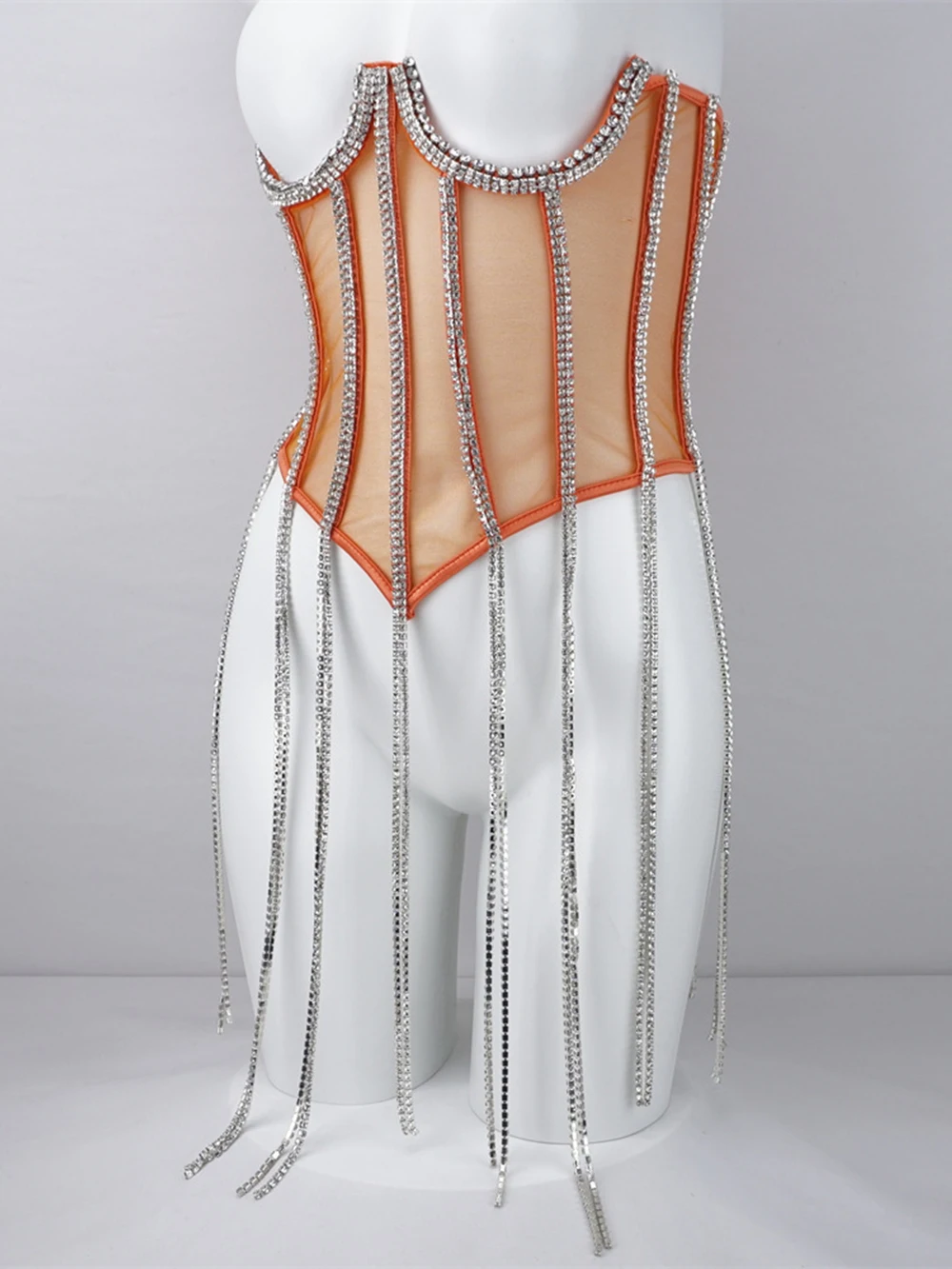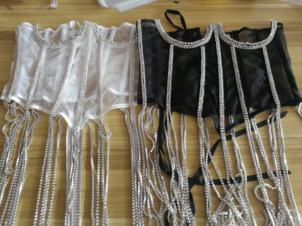Women Tunic Bras In Waist Corset Tops Fashion Diamond Luxury Diamond Tassel Corset Slim Vest Sexy Tmesh Sheer Top Female 2025