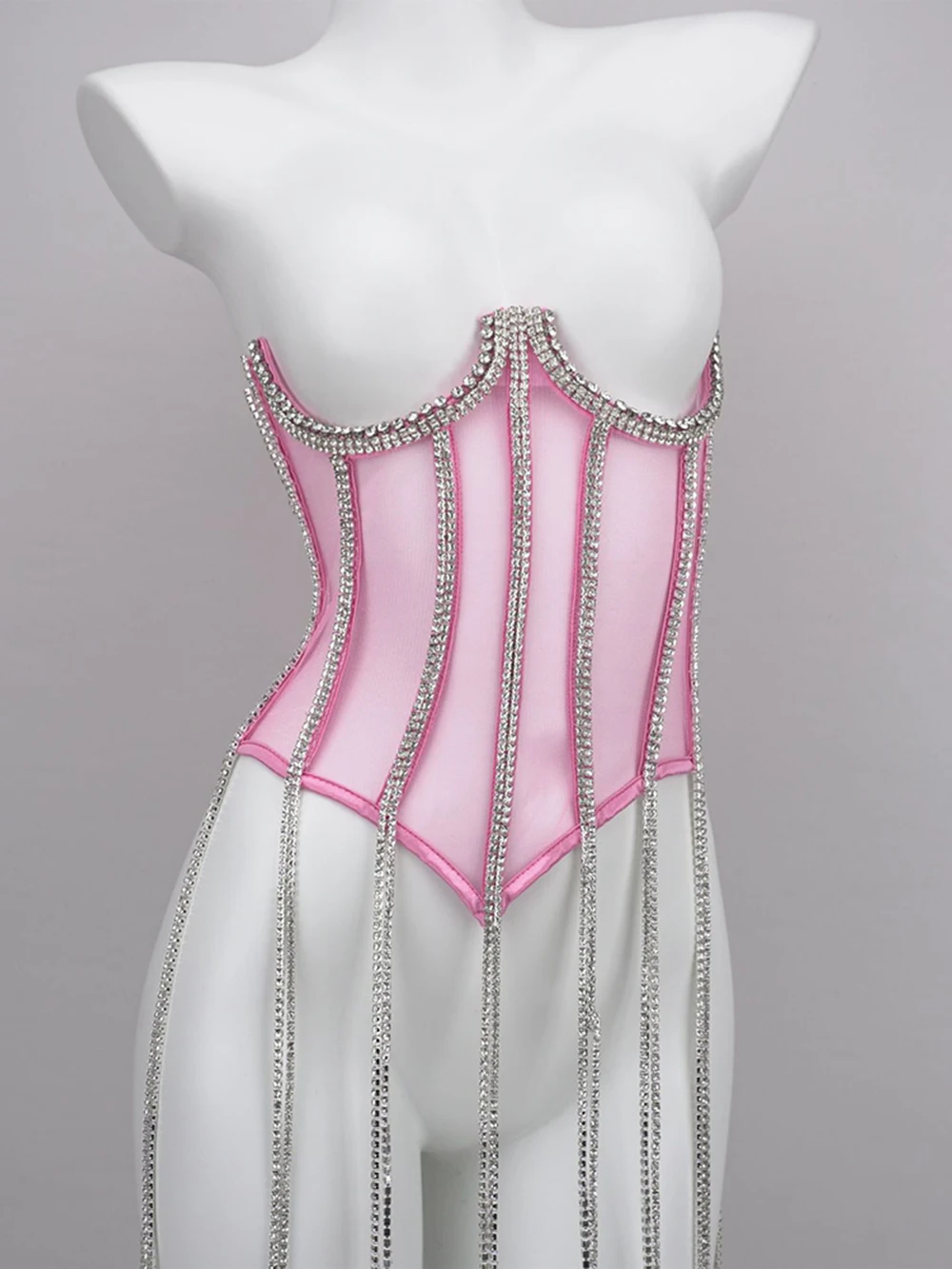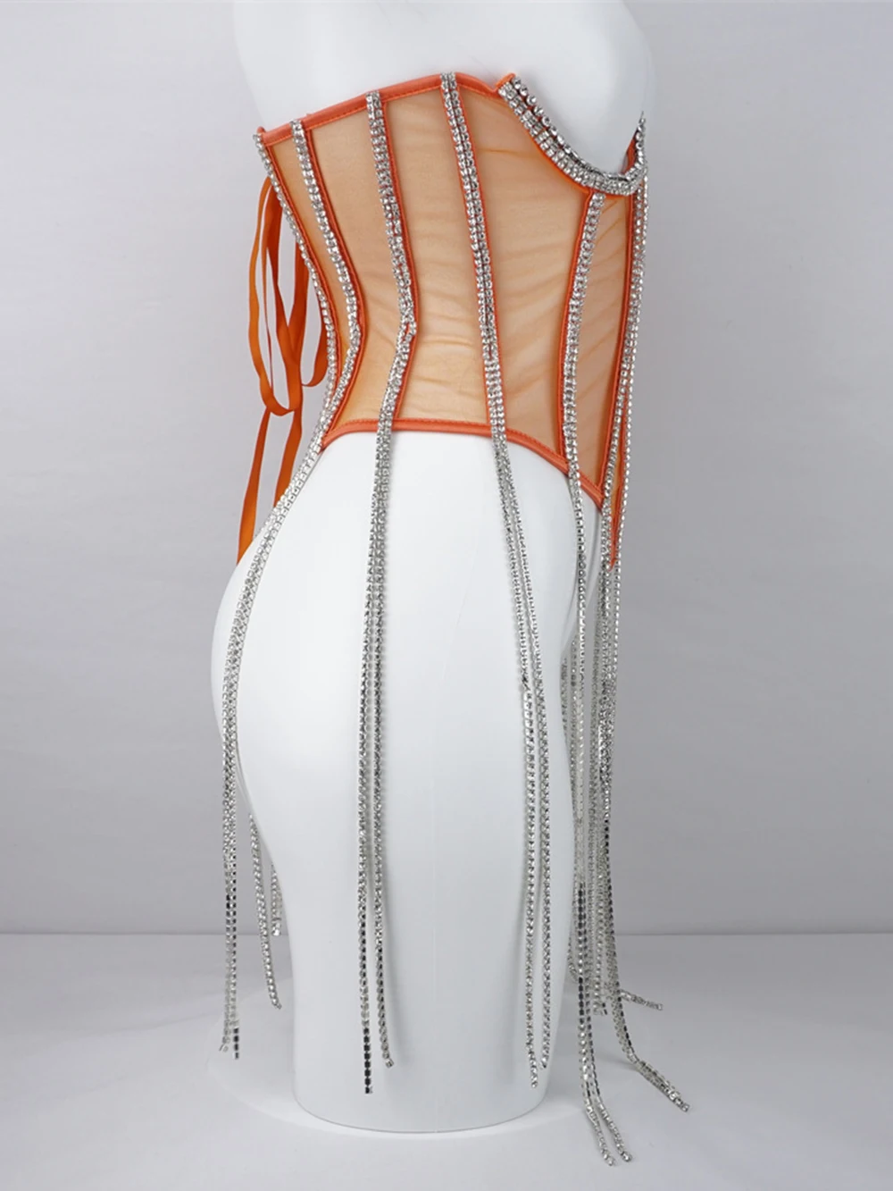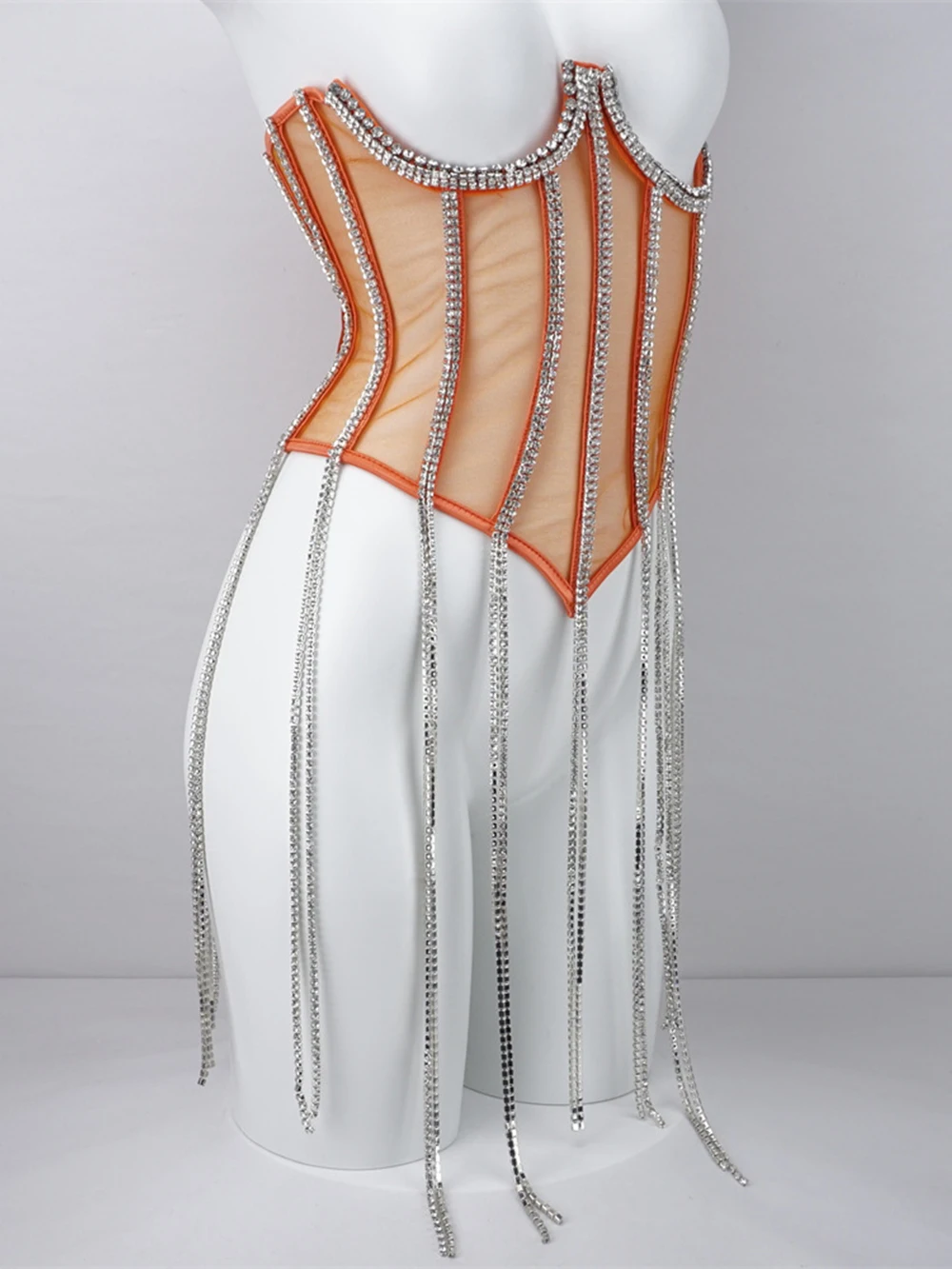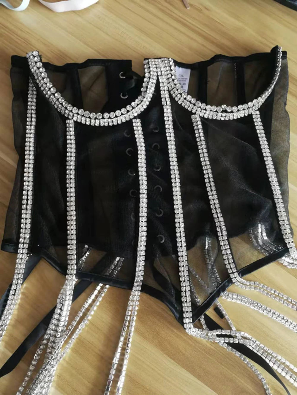 Women Tunic Bras In Waist Corset Tops Fashion Diamond Luxury Diamond Tassel Corset Slim Vest Sexy Tmesh Sheer Top Female 2025