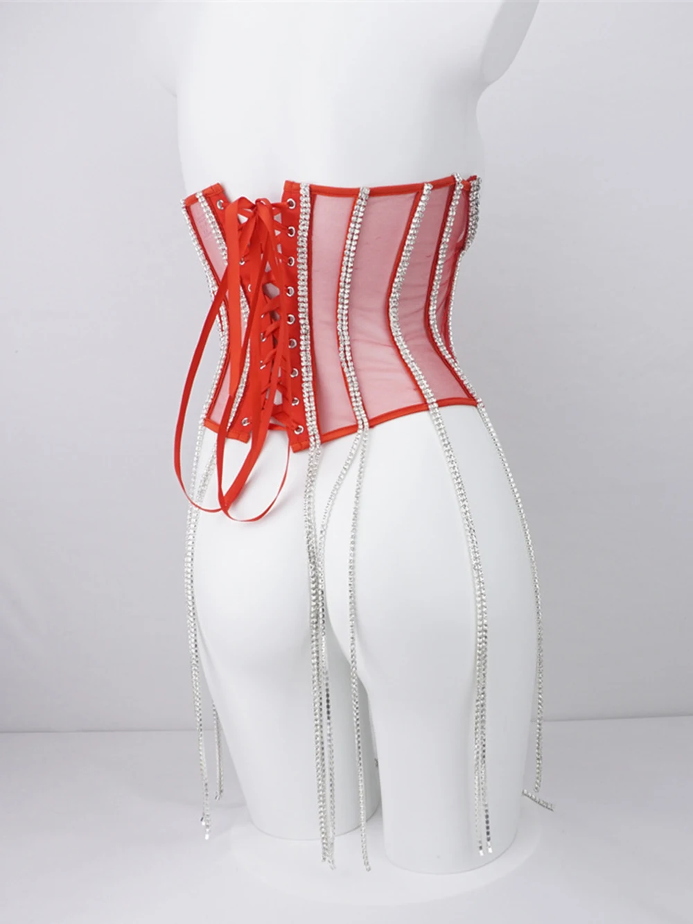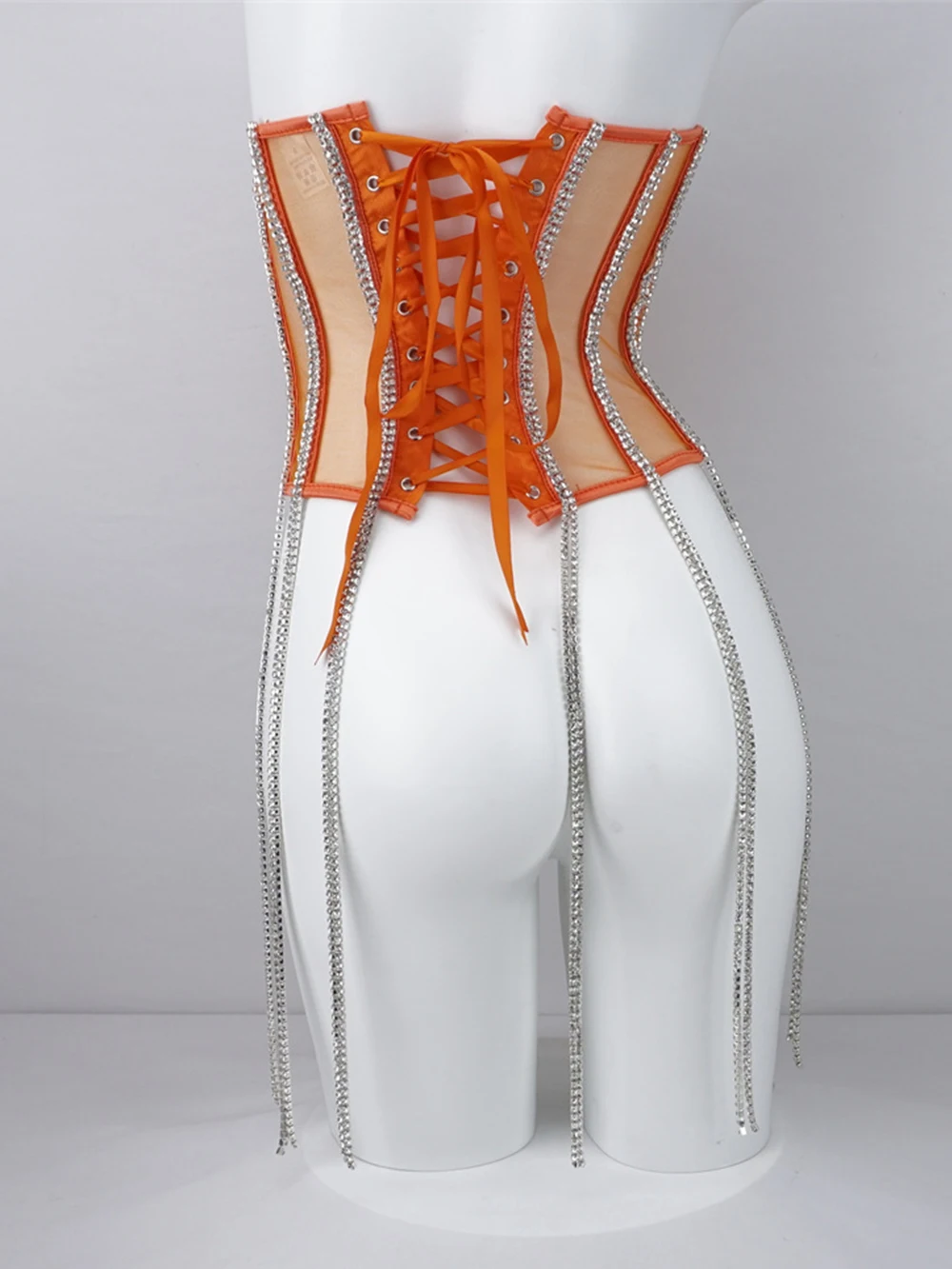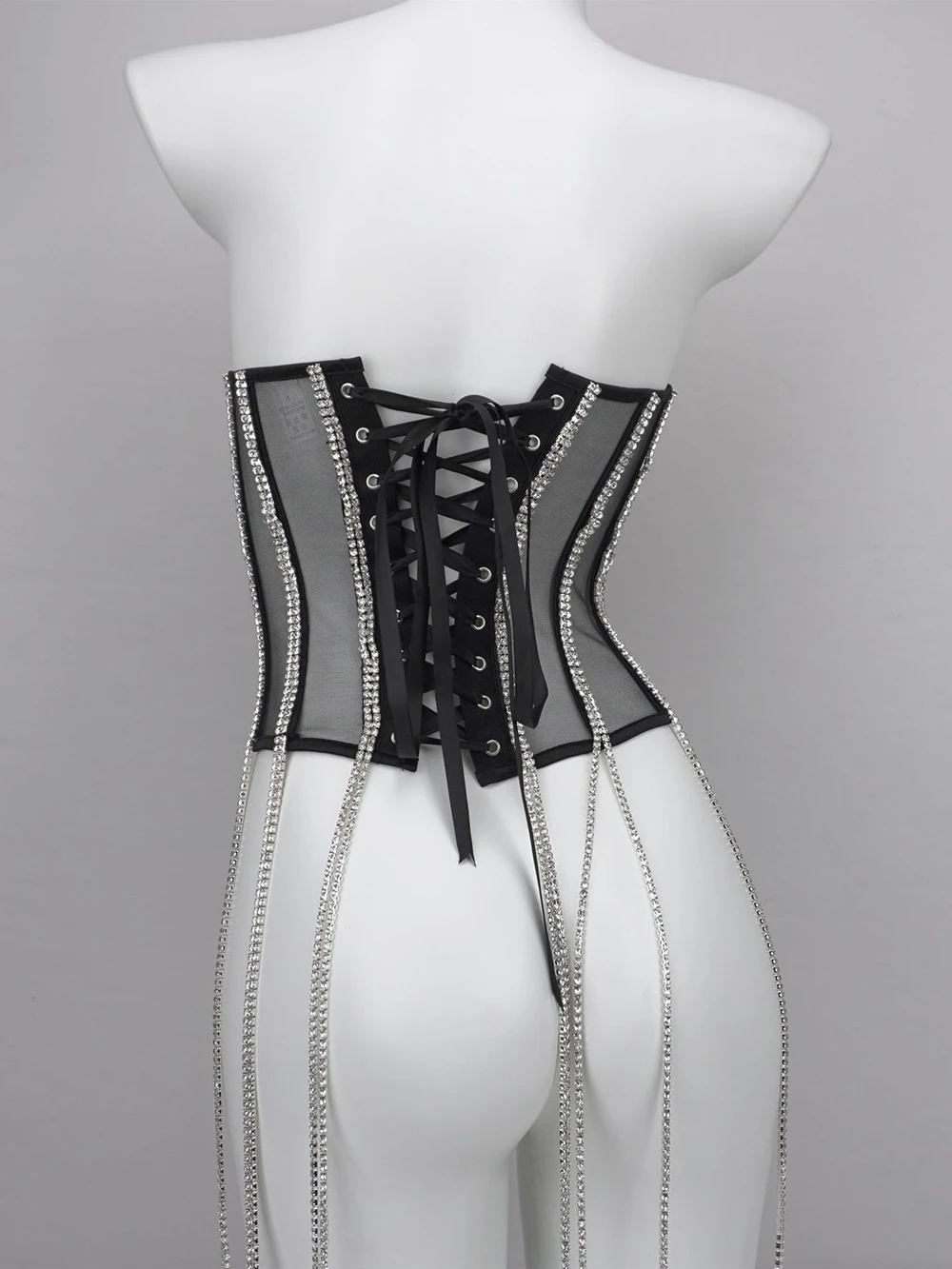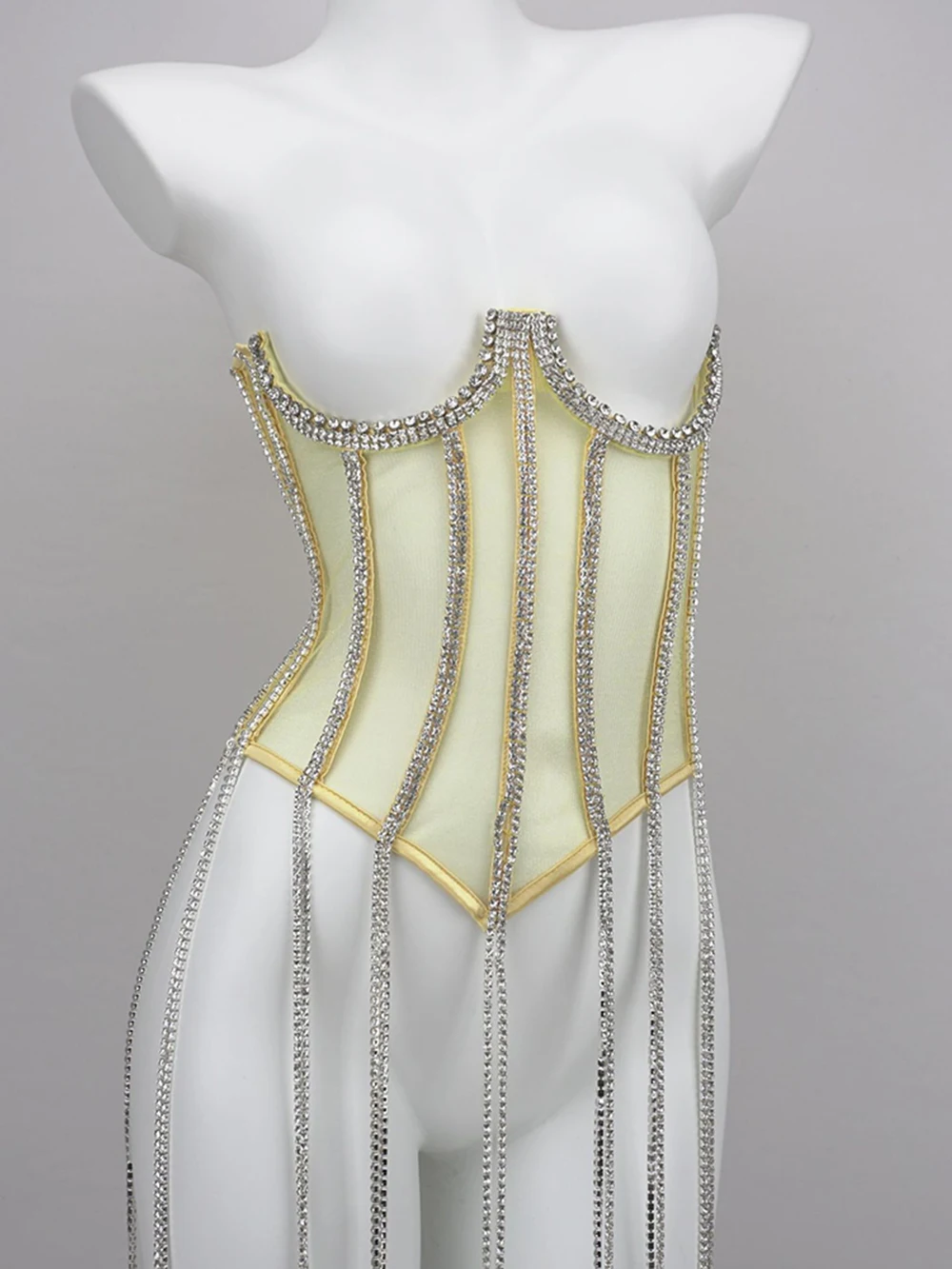 Women Tunic Bras In Waist Corset Tops Fashion Diamond Luxury Diamond Tassel Corset Slim Vest Sexy Tmesh Sheer Top Female 2025