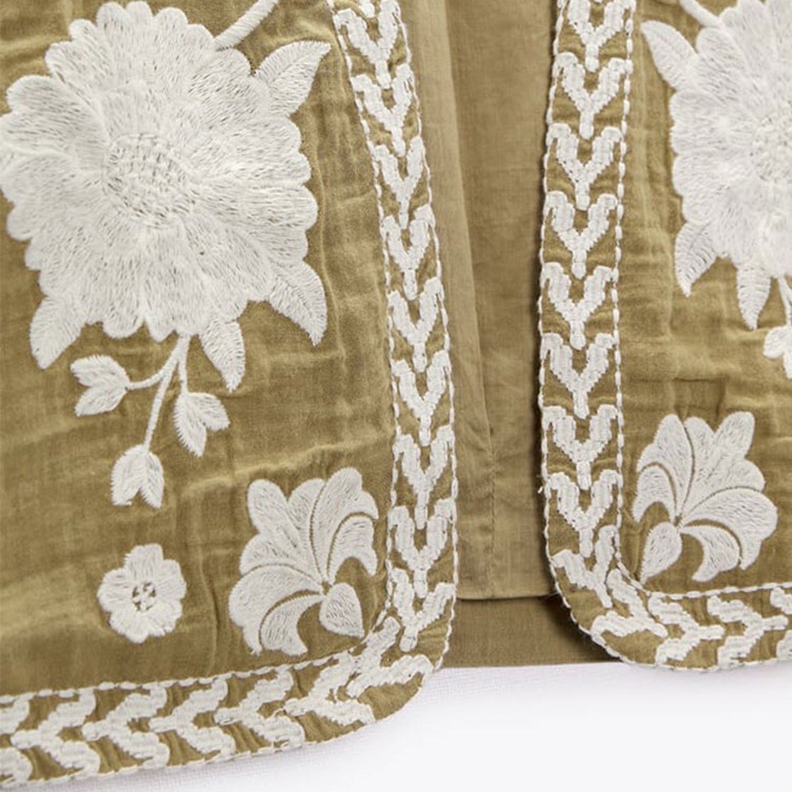 Women Vintage Embroidered Crop Vest Top Y2K Boho Floral Sleeveless Open Front Cardigan Flower Linen Vest Waistcoat Gilet Outwear