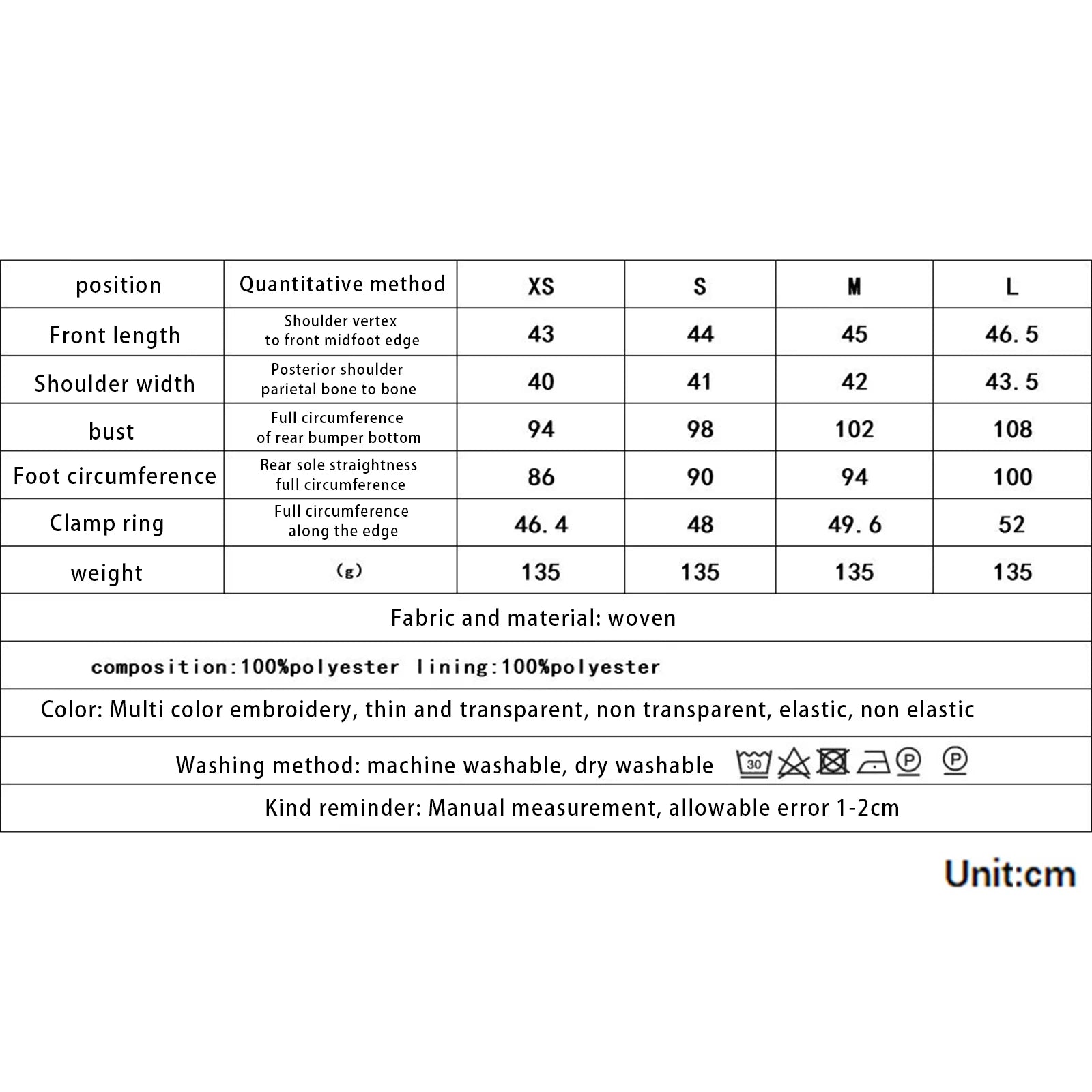 2.Please check the measurement chart carefully before you buy the item. (1 inch=2.54cm)