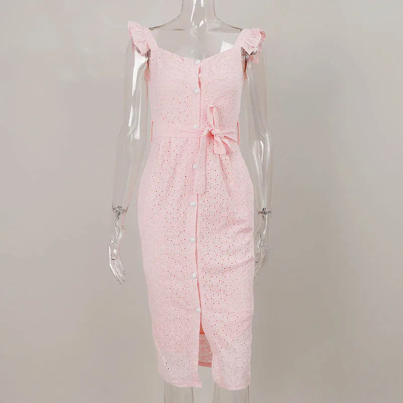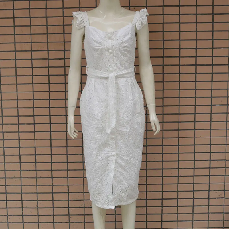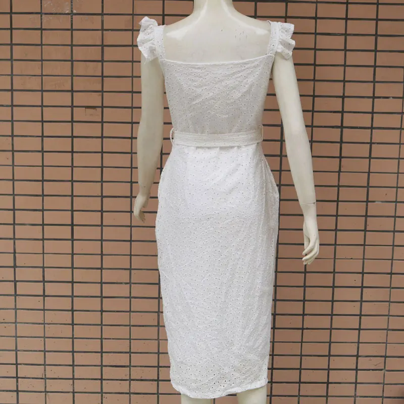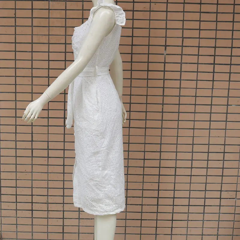 Women White Dress Lace Up Sexy Midi Vestidos Ruffles Sleeveless Bodycon Female Dresses 2022 Buttons Belt Elegant Ladies Clothes