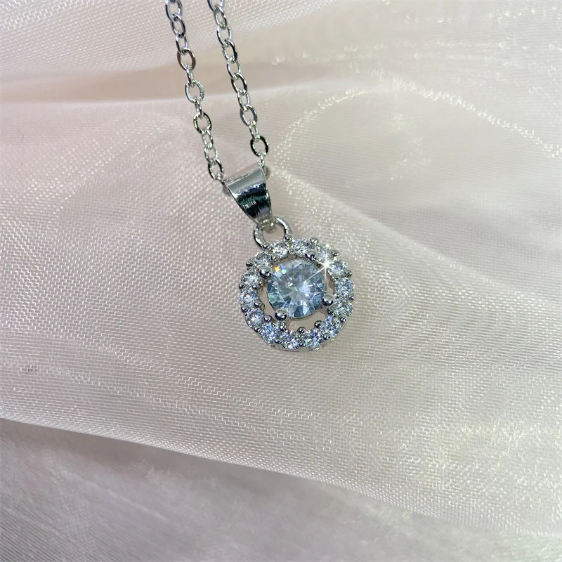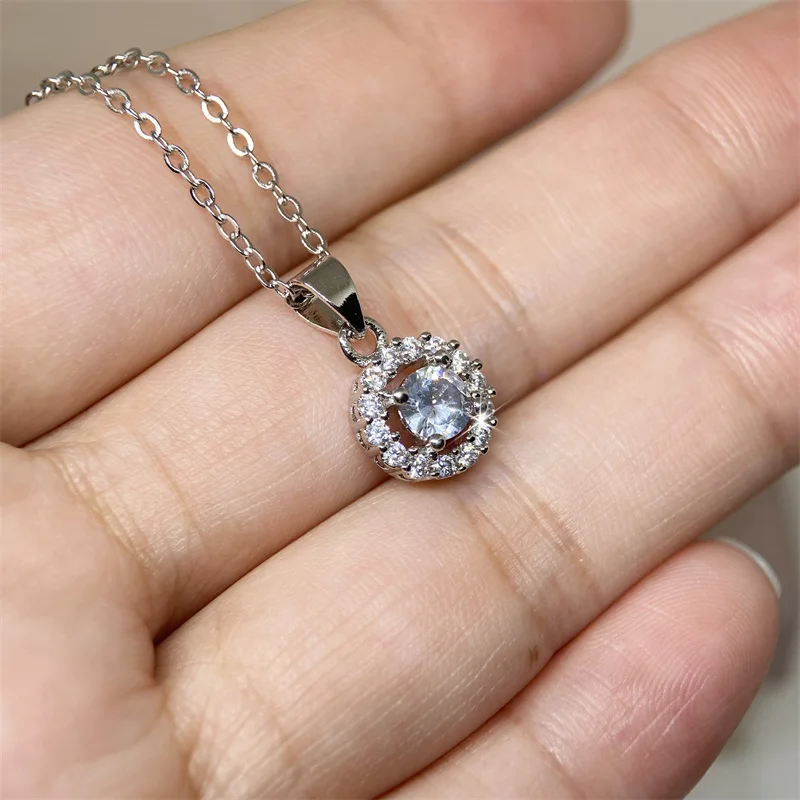 Women's Chain Necklace Round White Zirconia Pendant Fashion Jewelry Wedding Engagement Accessories Wholesale N001