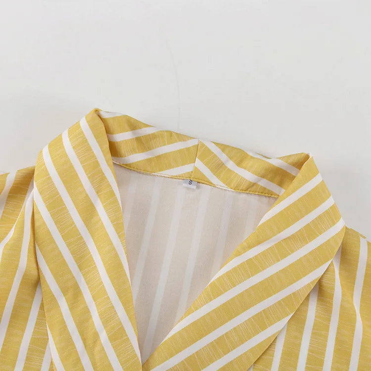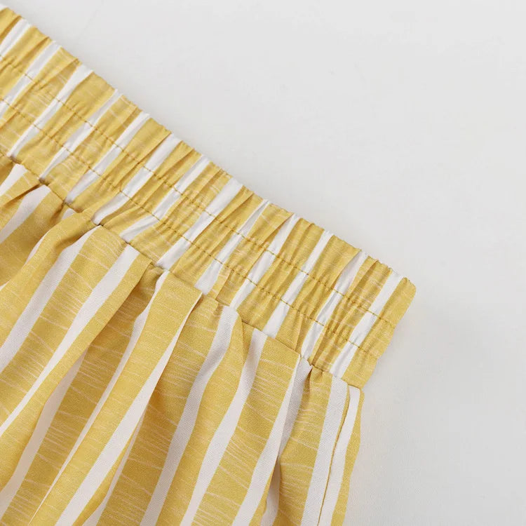 Women's Dress Sets Autumn New Striped Long-sleeved Loose Lace-up Top High-waisted Trousers Fashion Casual Suit for Women