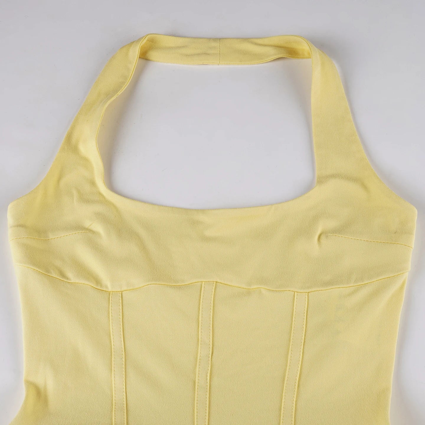 Women's Dresses 2025 Halter Mini Dress Chic U Neck Layer Ruffles Hem Bodycone A Line Vestido Summer Ladies Street Party Wear