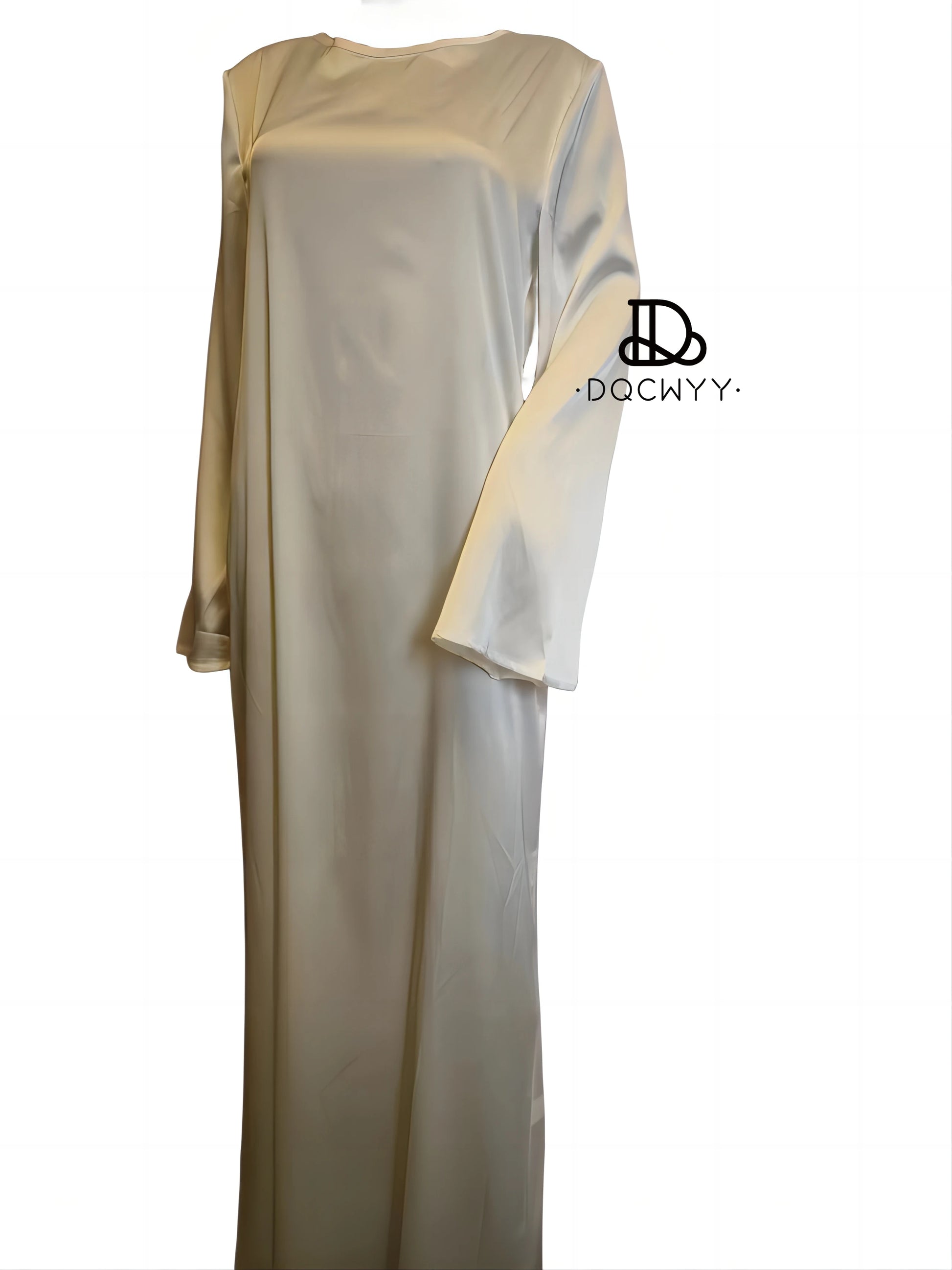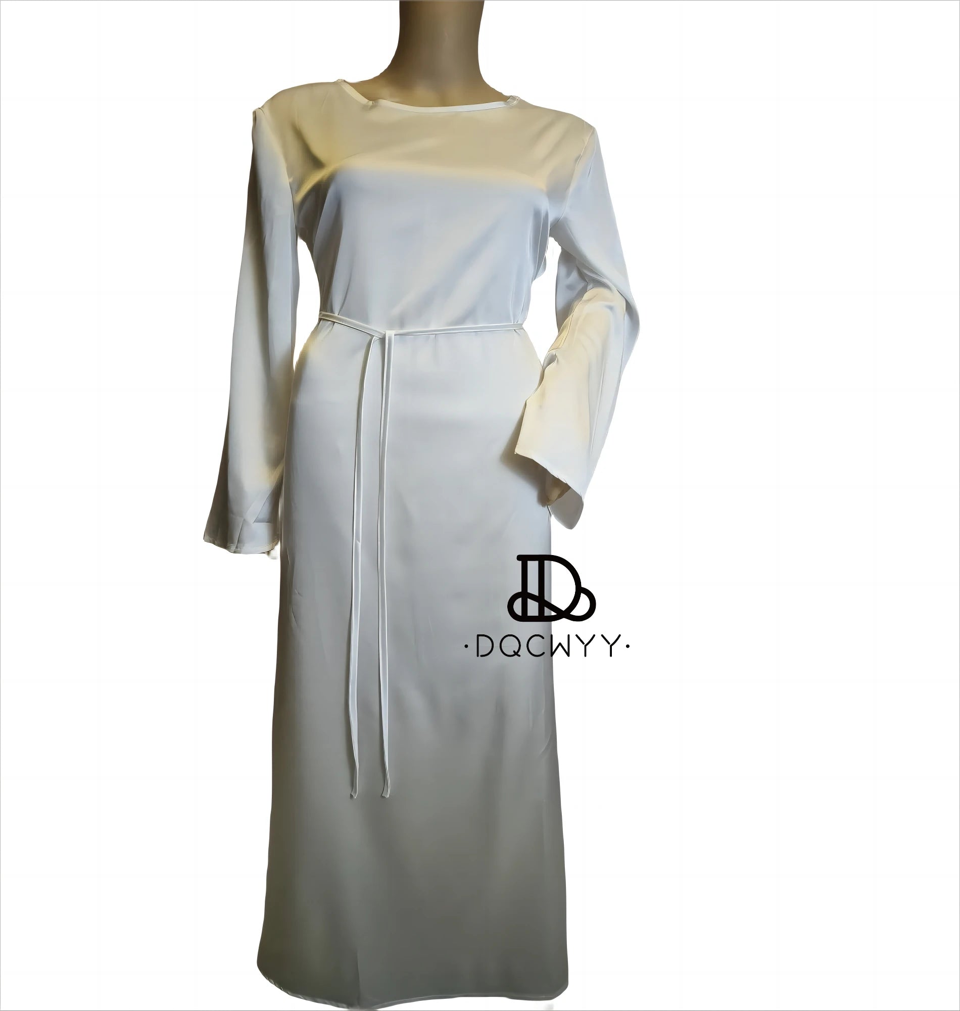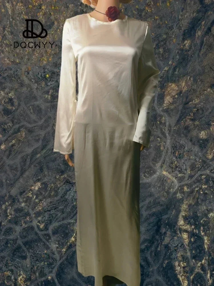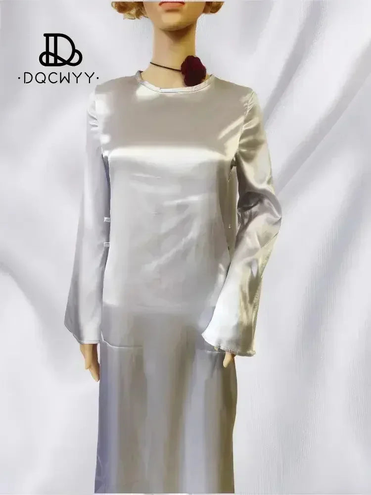 Womens Dresses 2025 New Long Dresses Fashion Simple Round Neck Satin Flare Sleeve Lace Up Slim Evening Party Dresses Sexy Dress