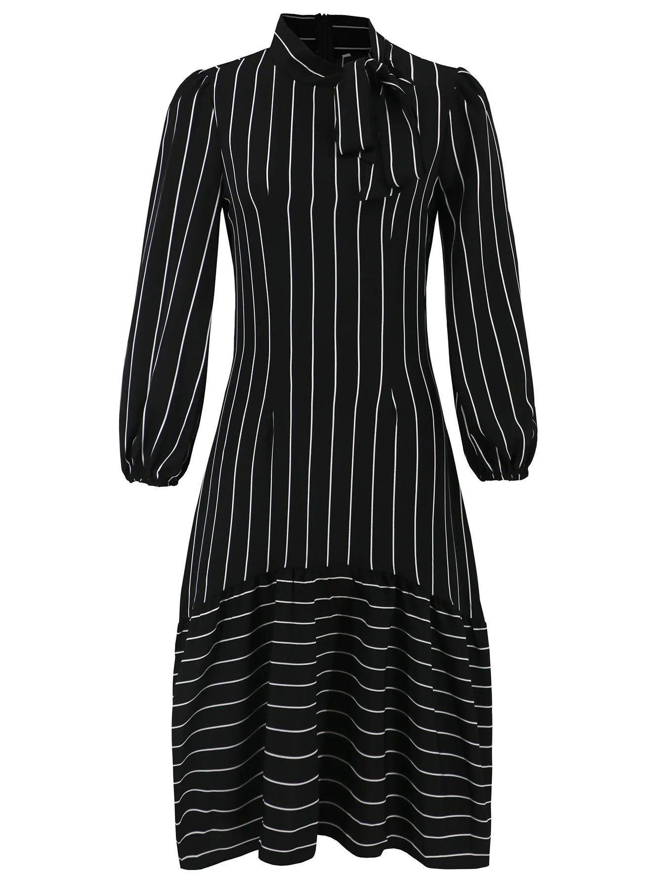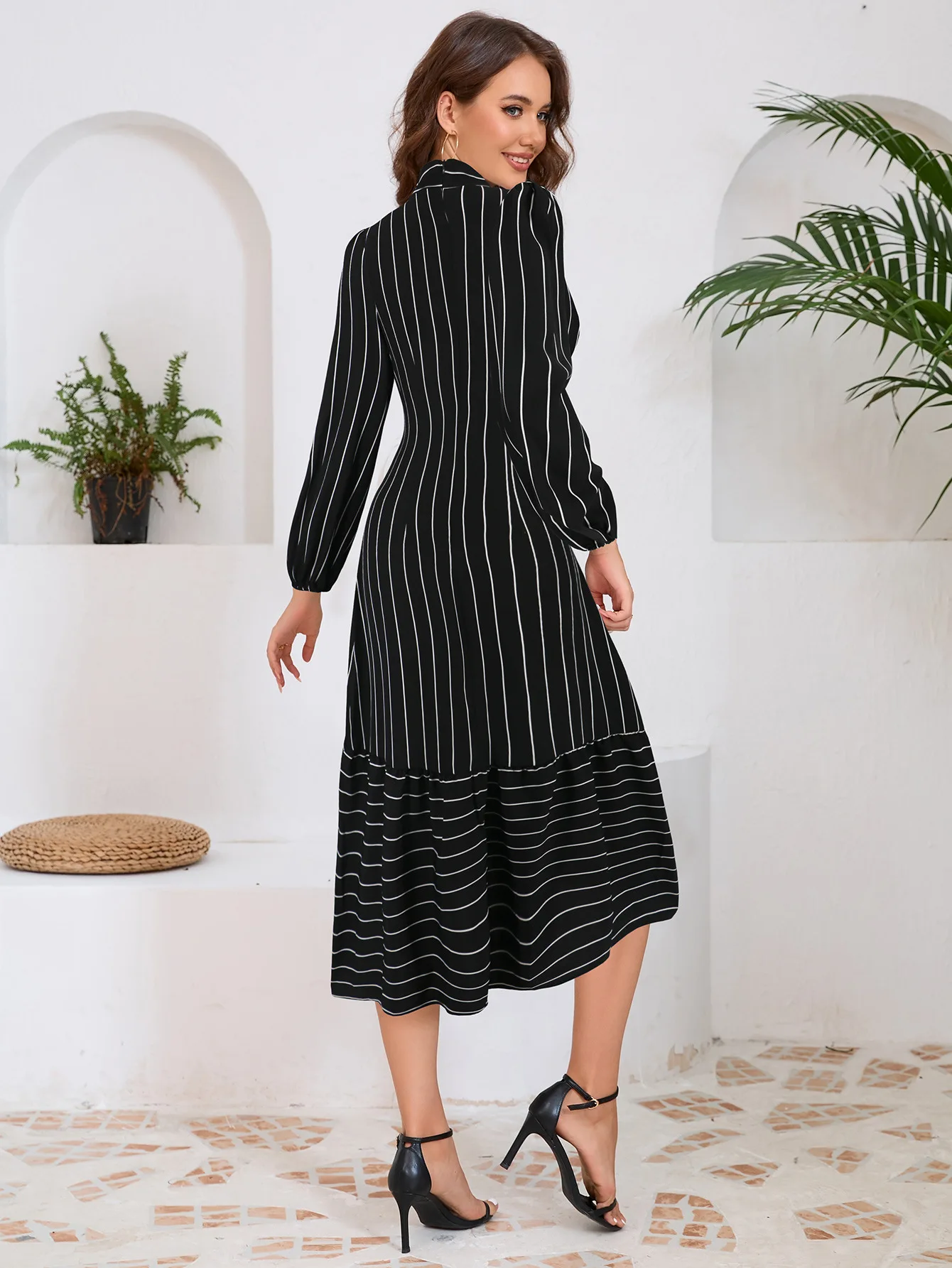 Women's Dresses Formal Fashion Office Lady Professional High-end Stand-up Collar Thin Striped Party Dress Vestidos De Mujer