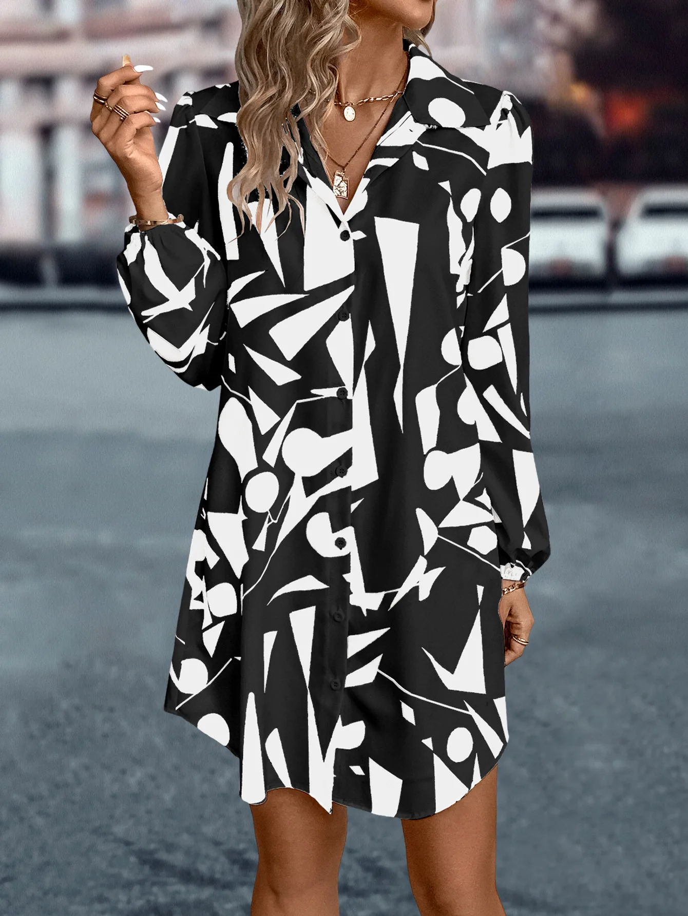 Women's Dresses New Printing Loose V-Neck Single Breasted Long Sleeve Elegant Casual Streetwear In 2024 Summer Vestidos For Lady