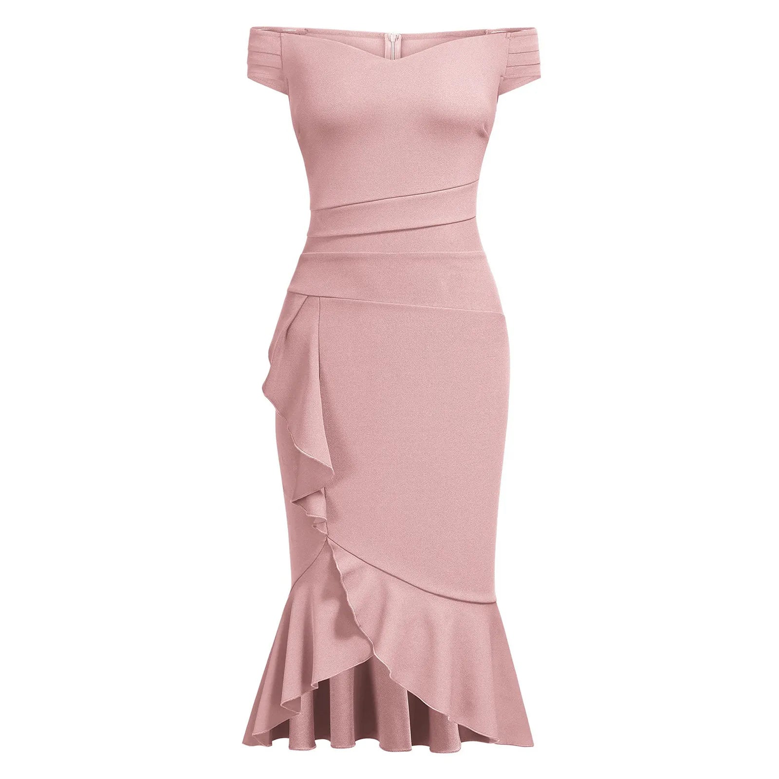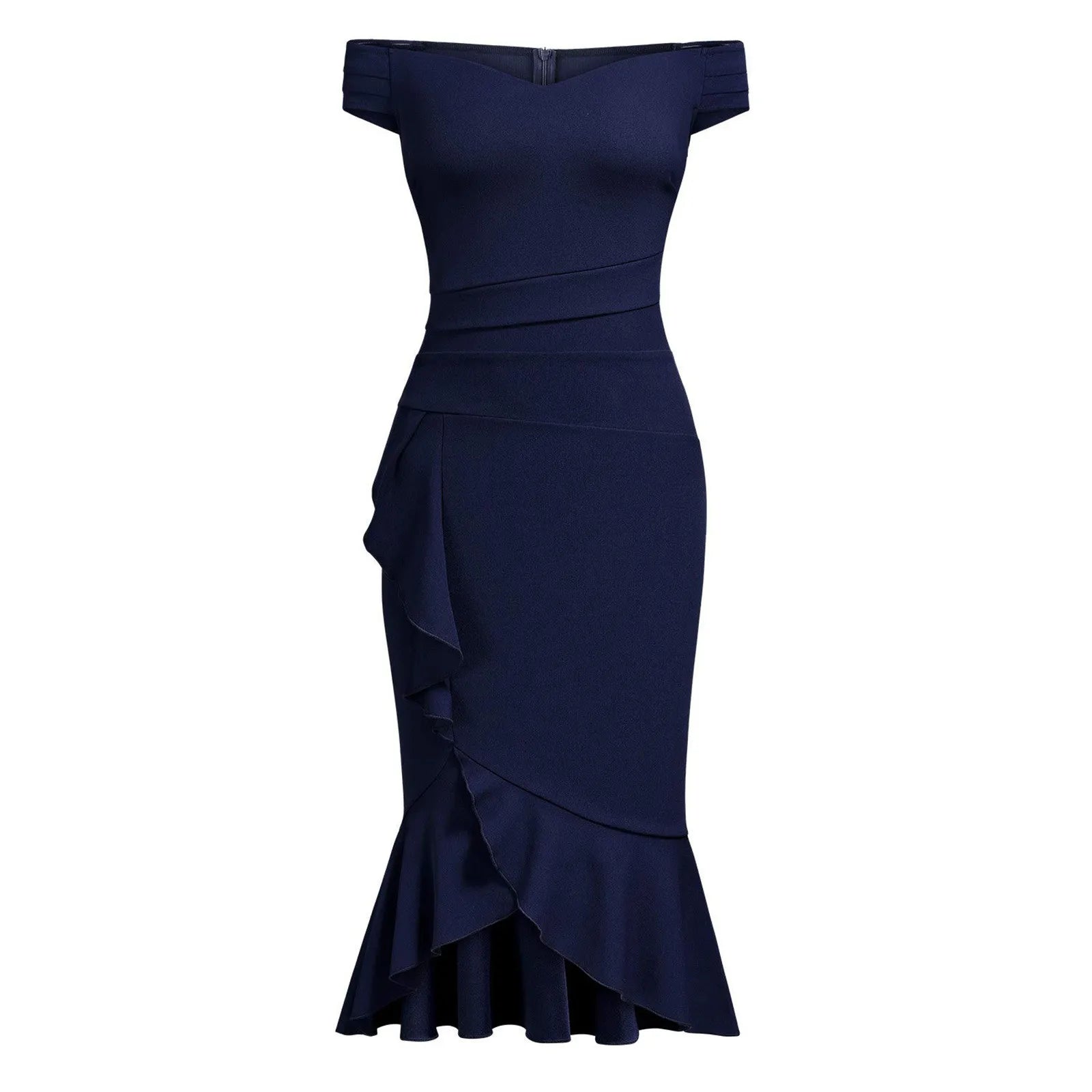 Women's elegant party dresses Off Shoulder V-Neck Ruffle Pleat Waist Slit Dress classic fishtail skirt traf vestidos para mujer