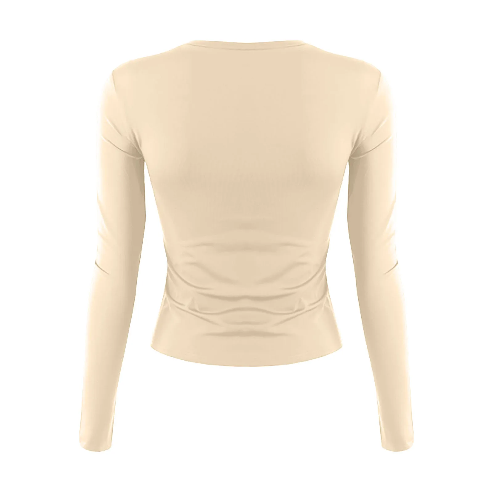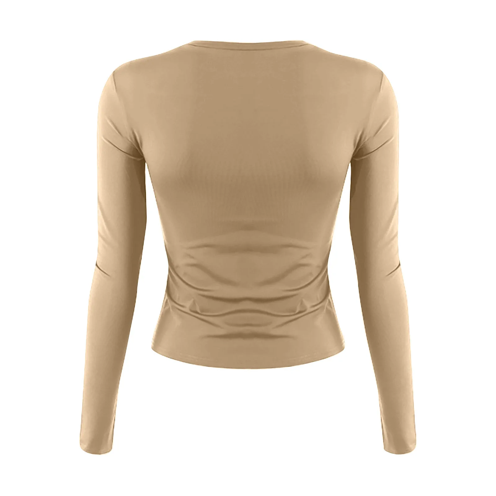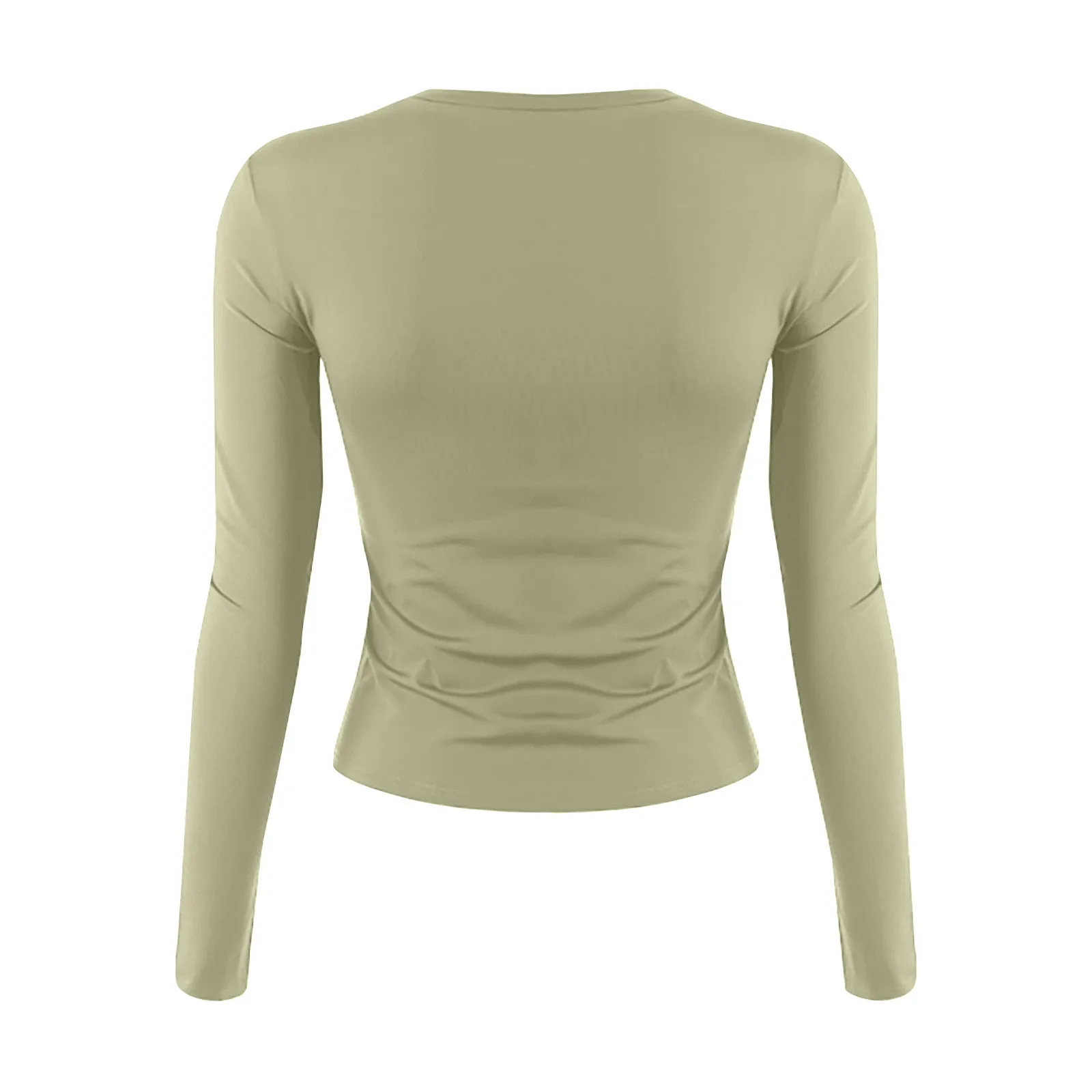 Women's Fashion Solid Colour Round Neck Long Sleeve T-Shirt Top