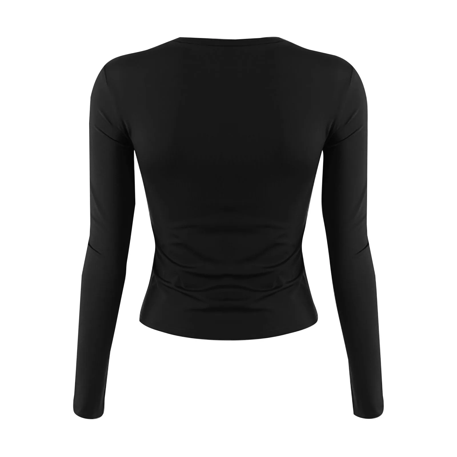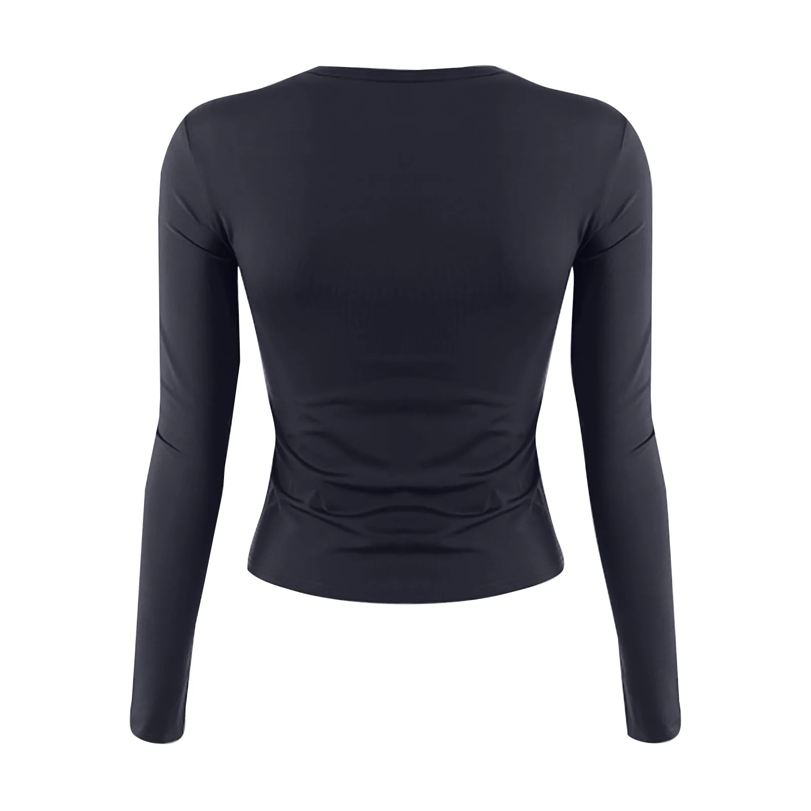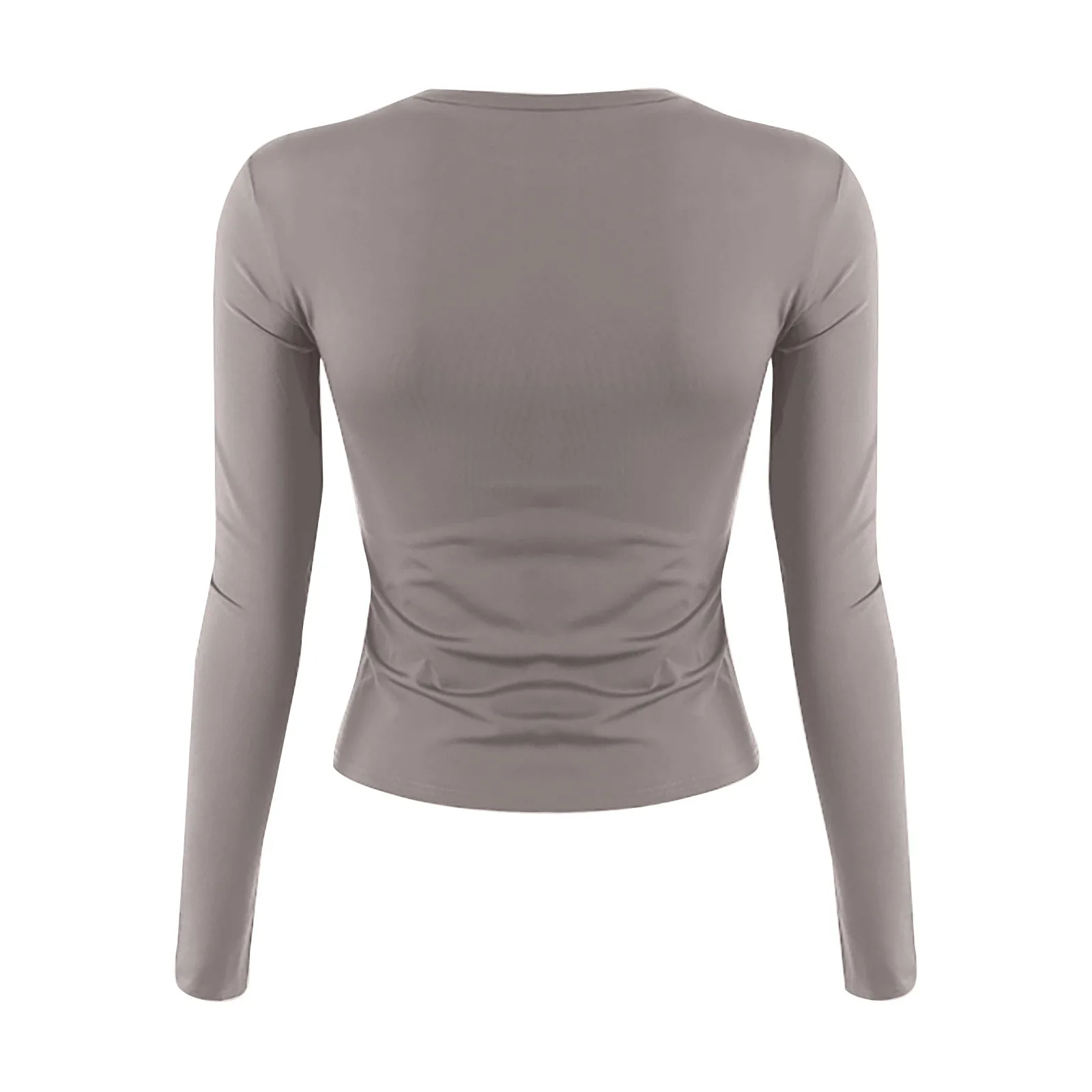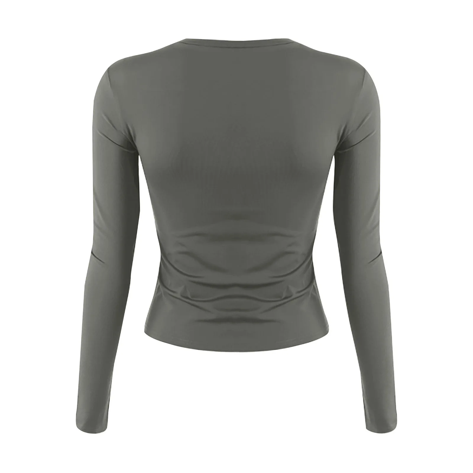 Women's Fashion Solid Colour Round Neck Long Sleeve T-Shirt Top