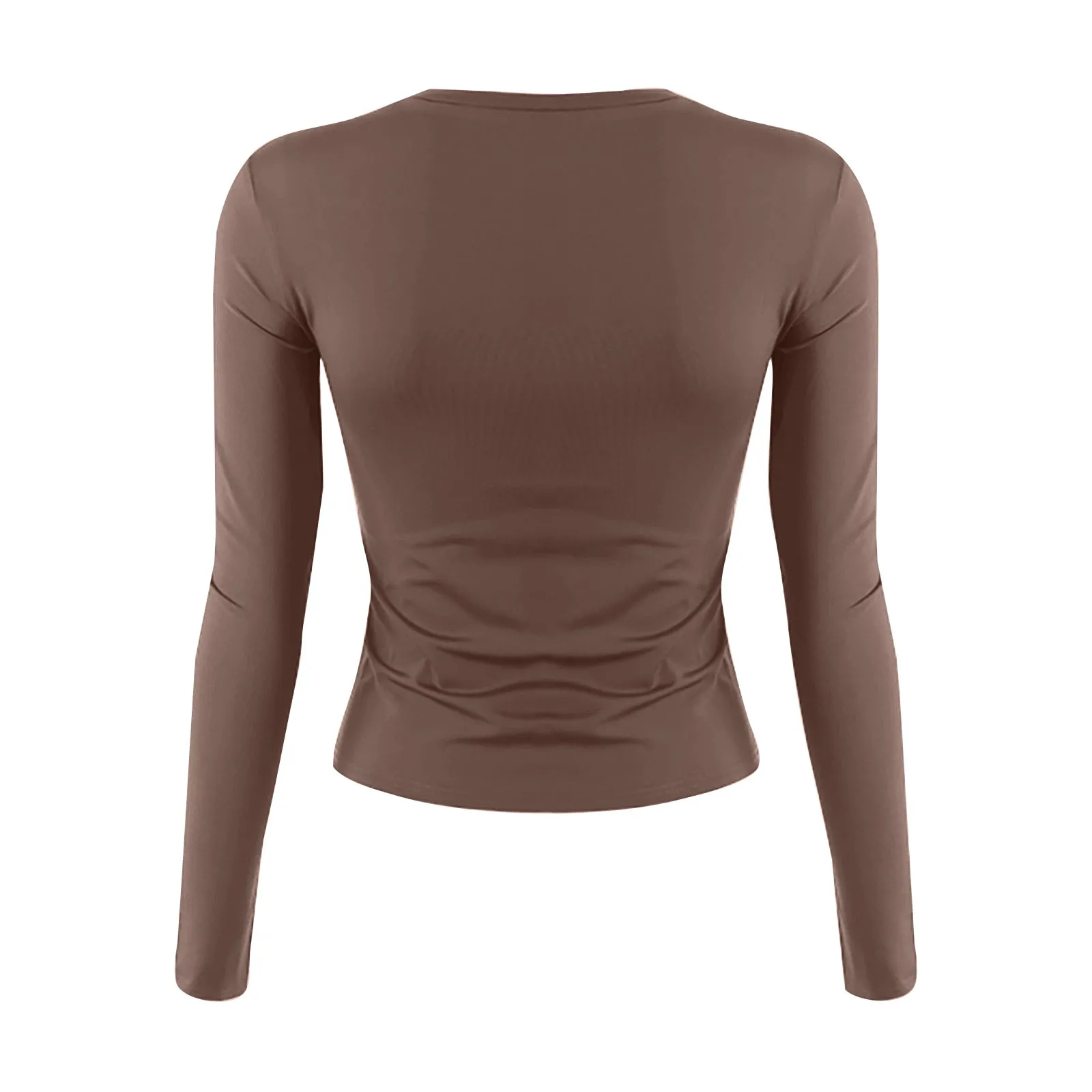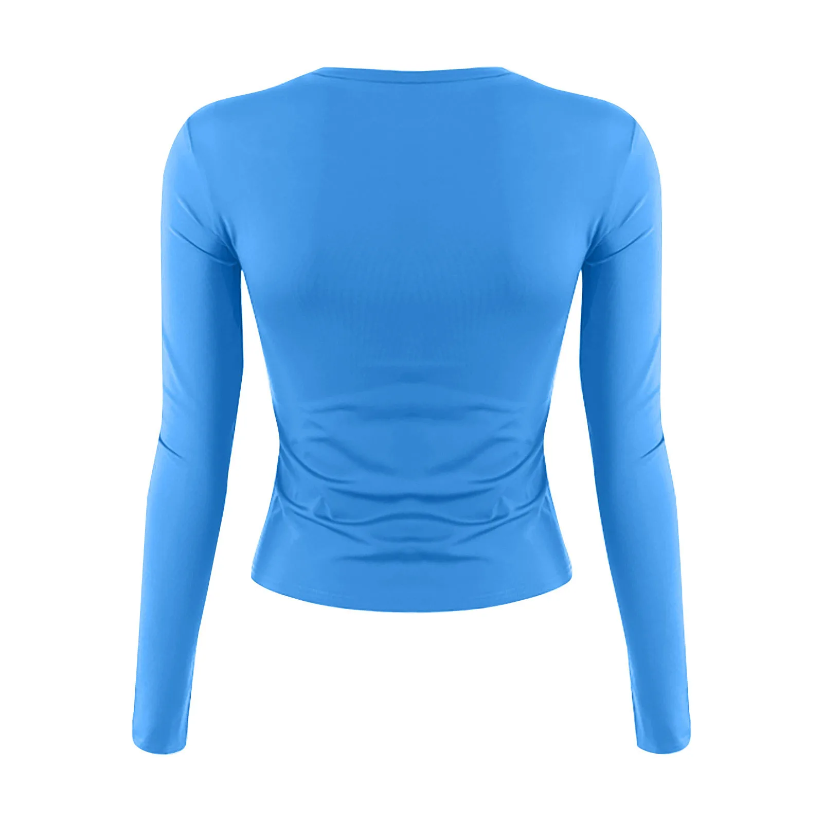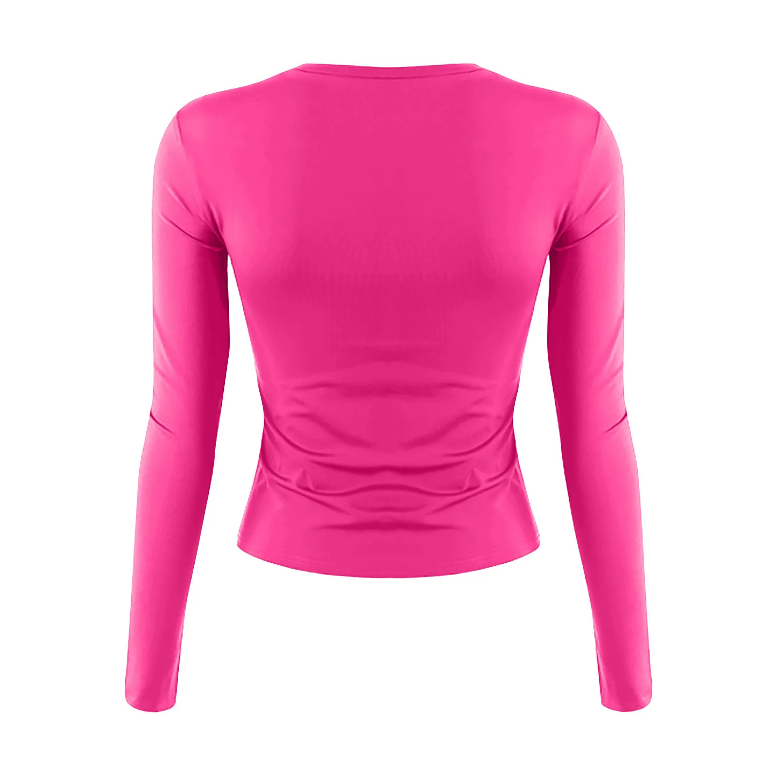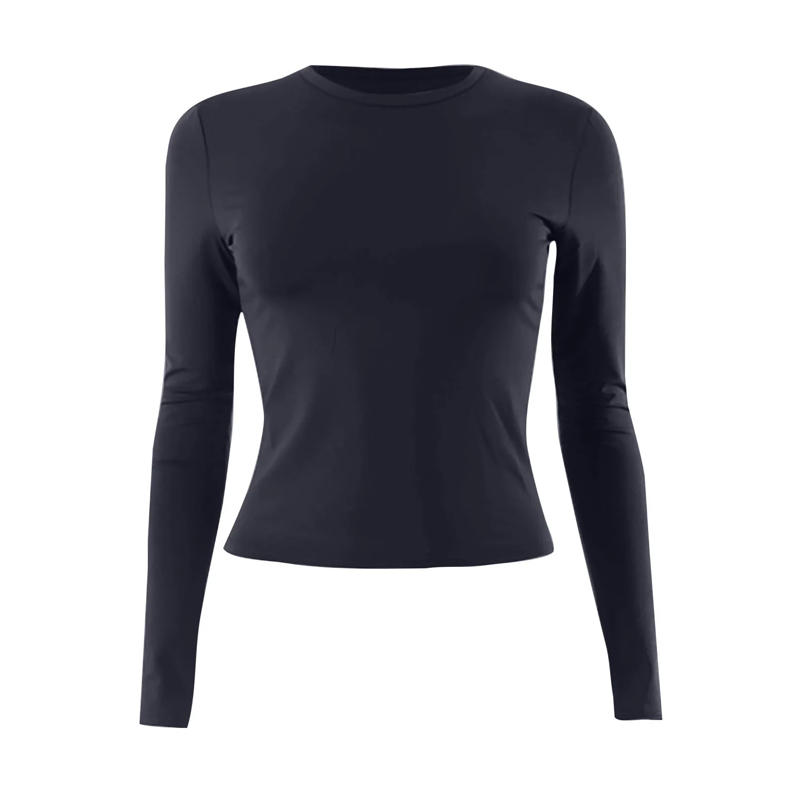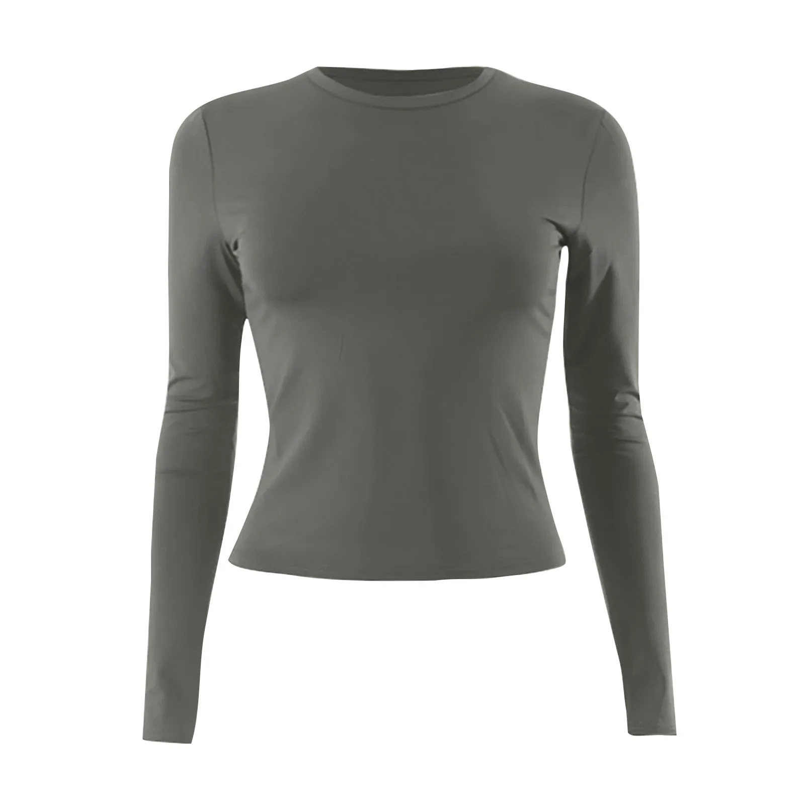 Women's Fashion Solid Colour Round Neck Long Sleeve T-Shirt Top Tops for Women Womens Tops and Blouses Trendy Womens Summer Tops