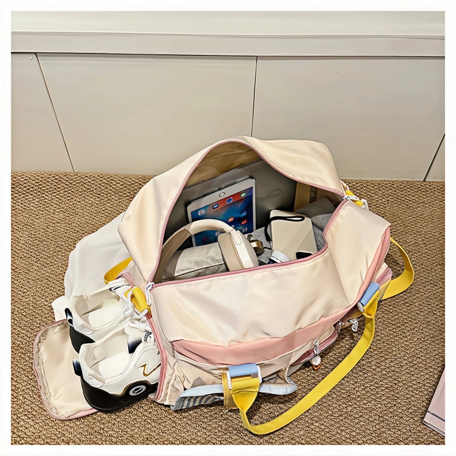 Women's Gym Tote Bags - Gym bags, large capacity sports bags for yoga, travel and fitness essentials - stylish design-tan