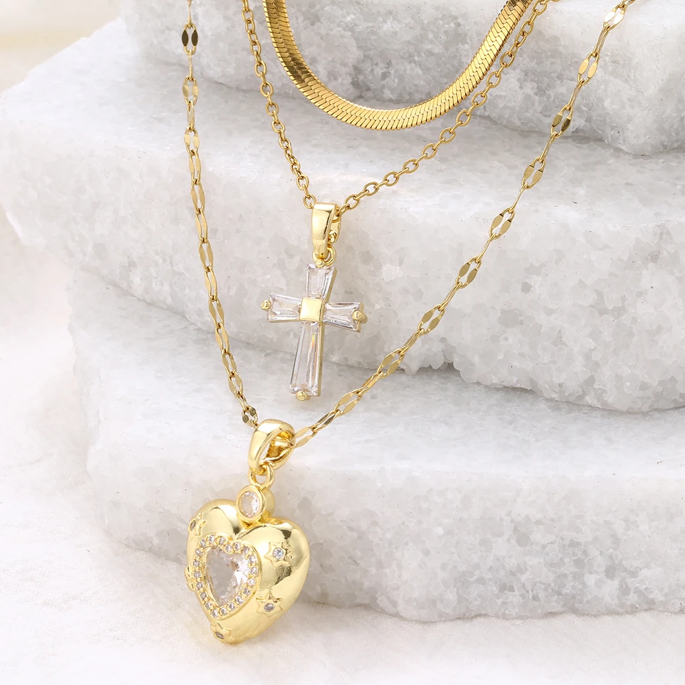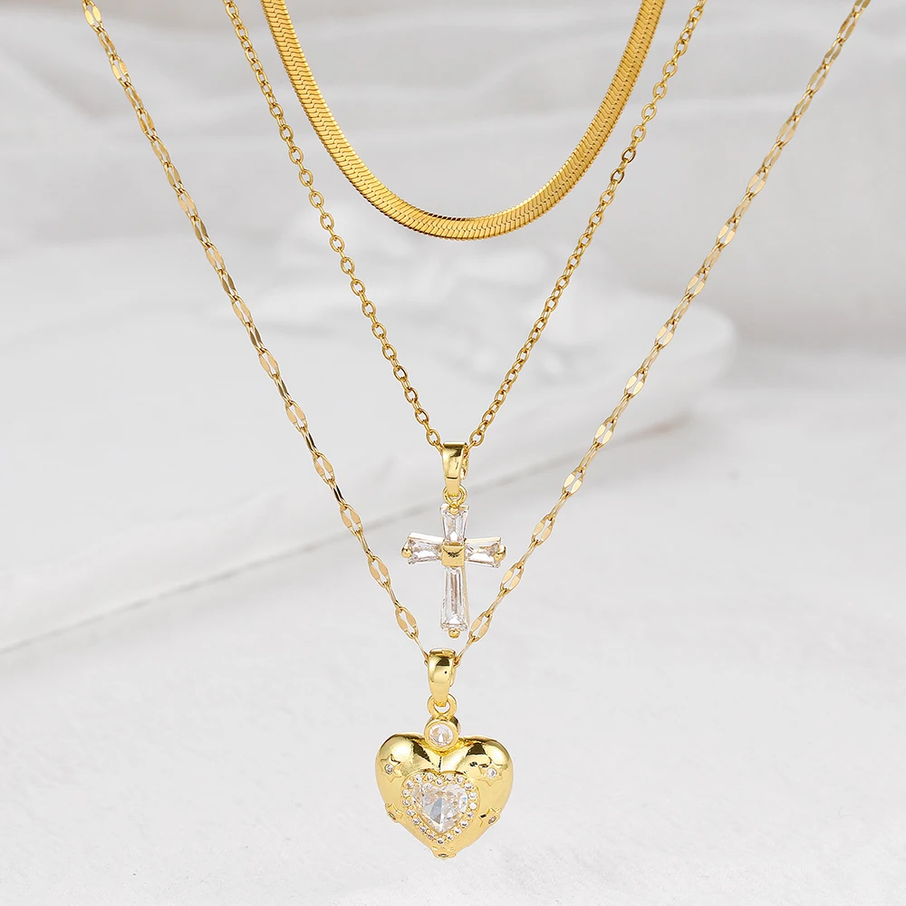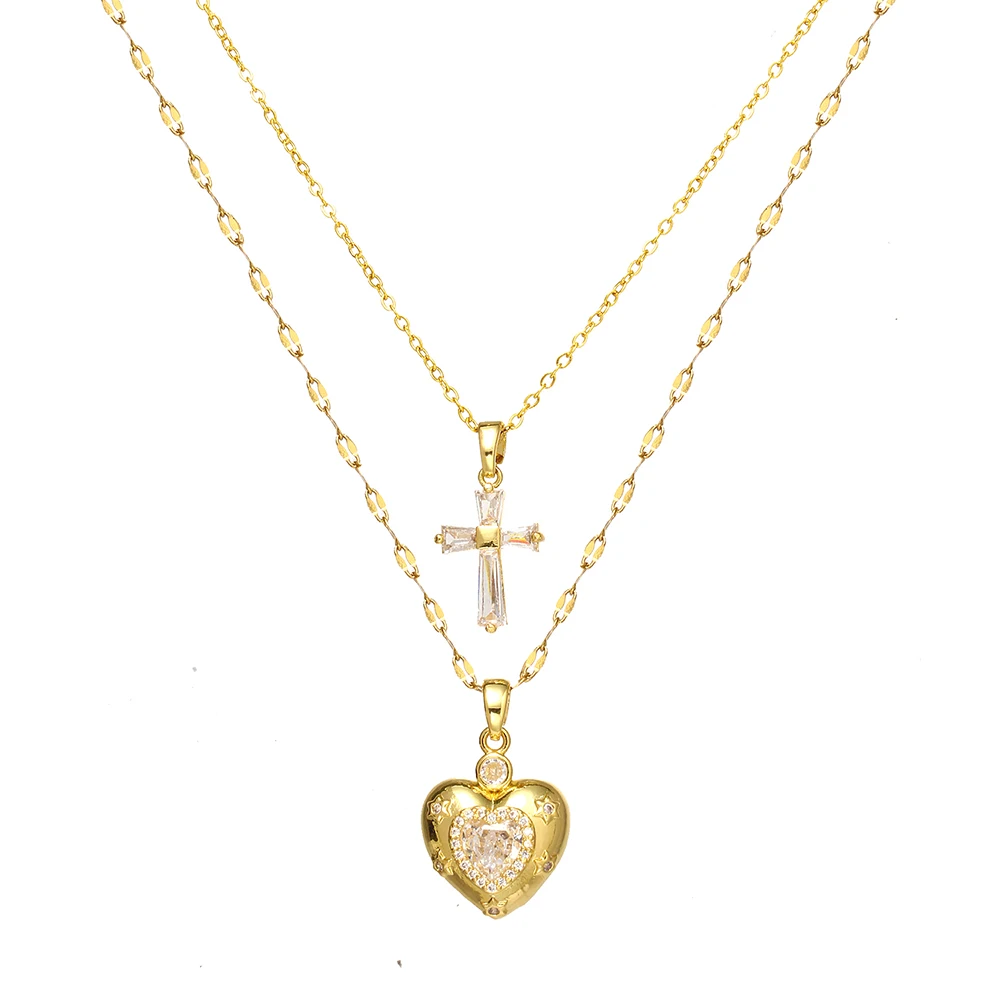 Women's High-End Heart-Shaped Necklace with Zircon Cross Pendant Stainless Steel Collarbone Chain Fashionable Jewelry