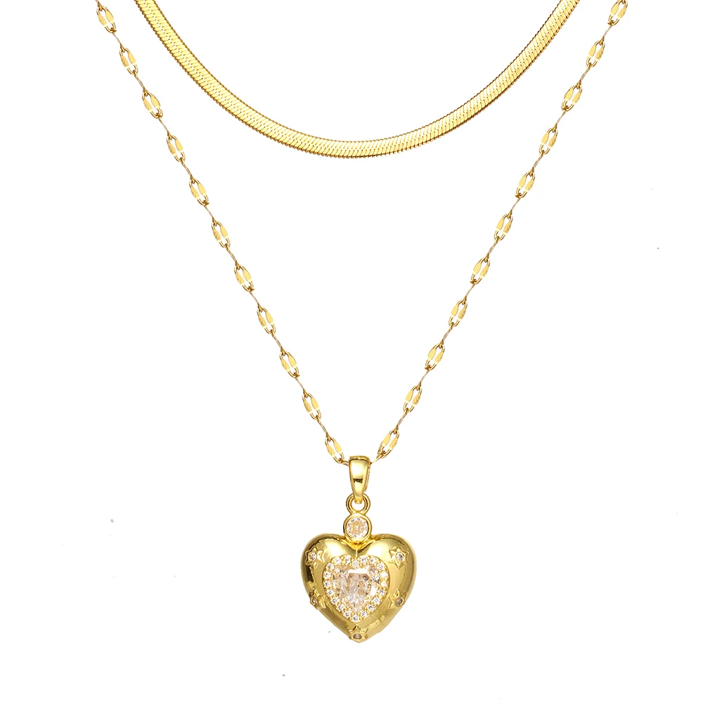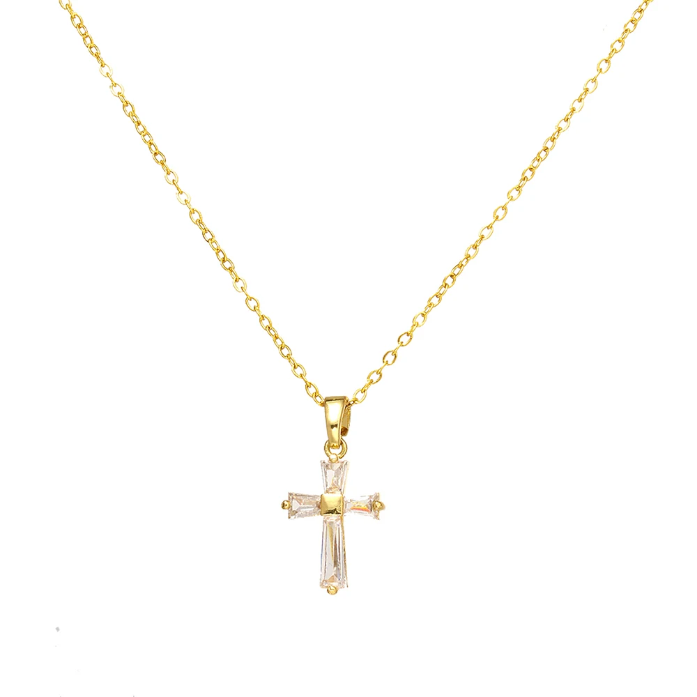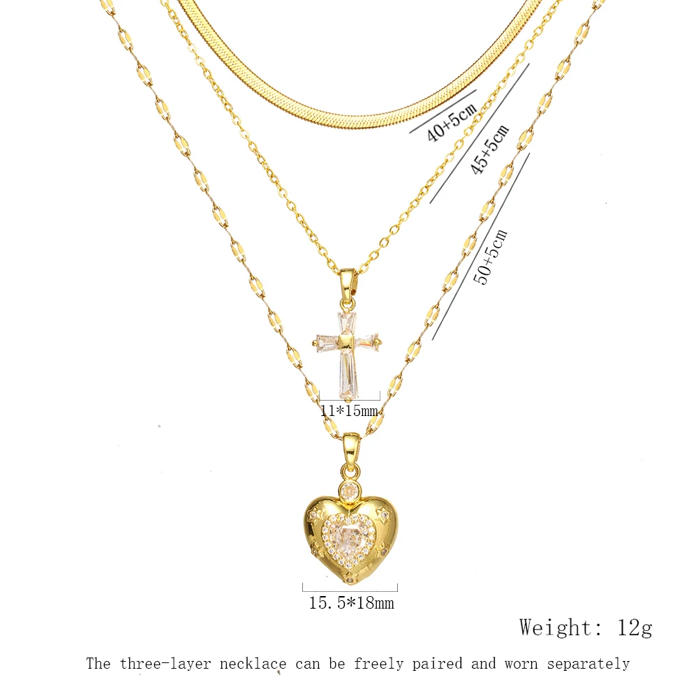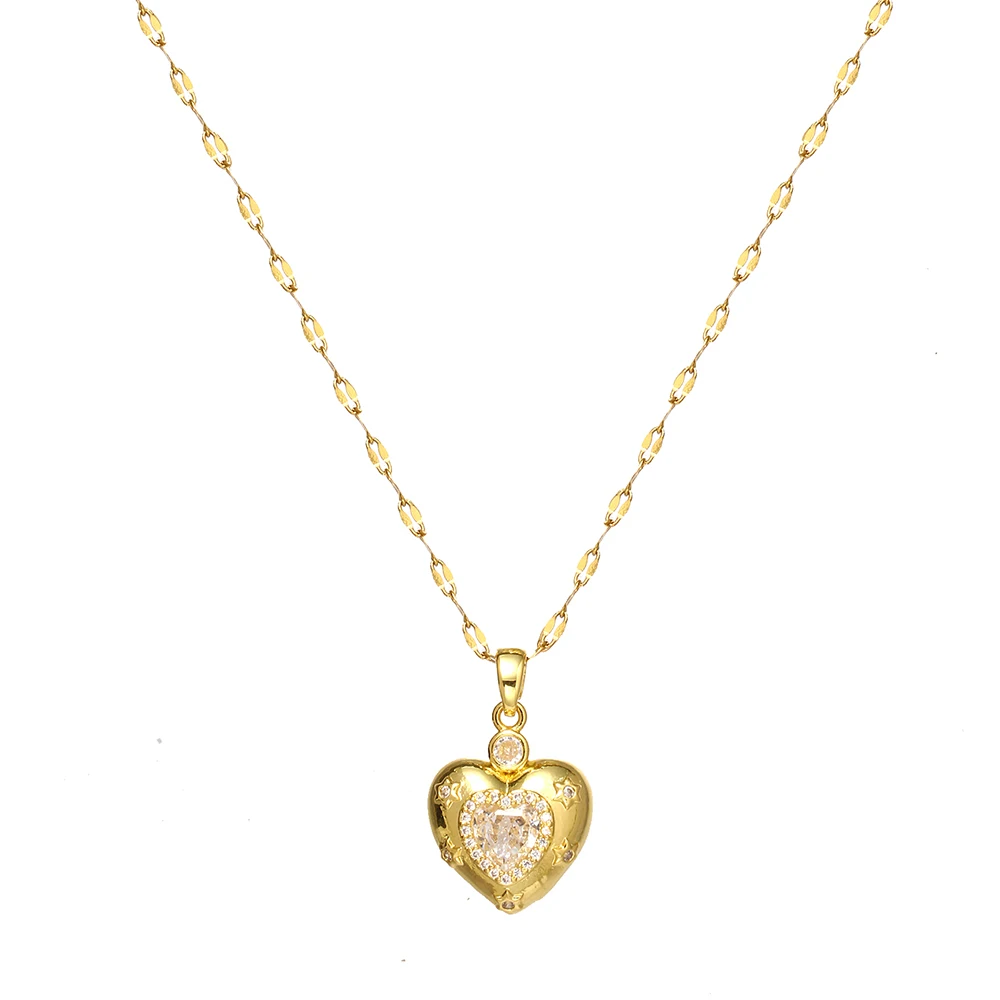 Women's High-End Heart-Shaped Necklace with Zircon Cross Pendant Stainless Steel Collarbone Chain Fashionable Jewelry