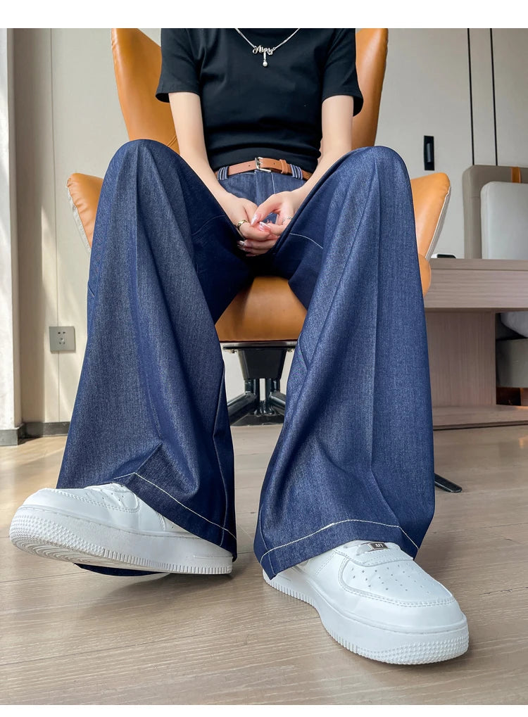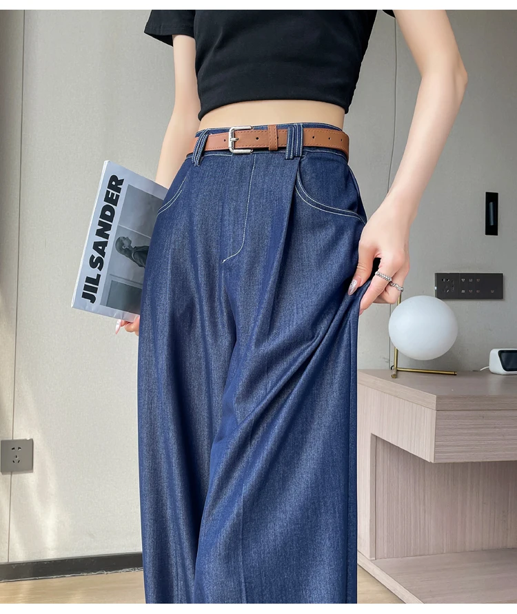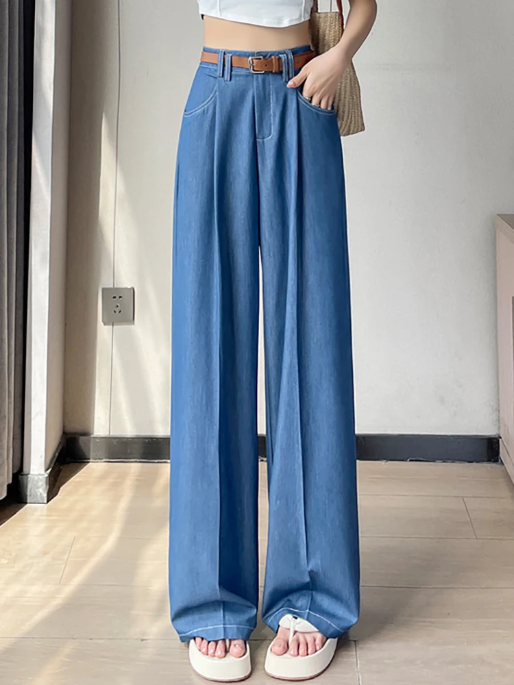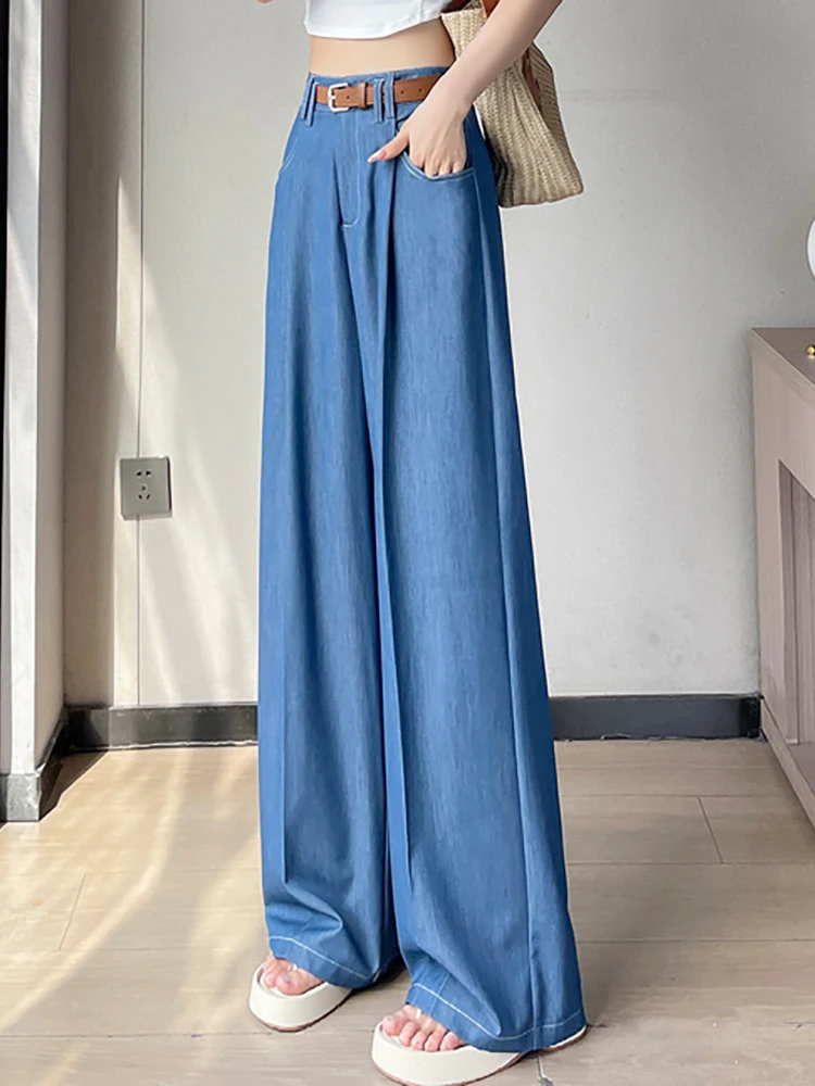 Women's Leisure Commuting Tencel Wide-Leg Jeans 2025 Spring Summer Comfortable Soft Ice Silk High Waisted Straight Jeans