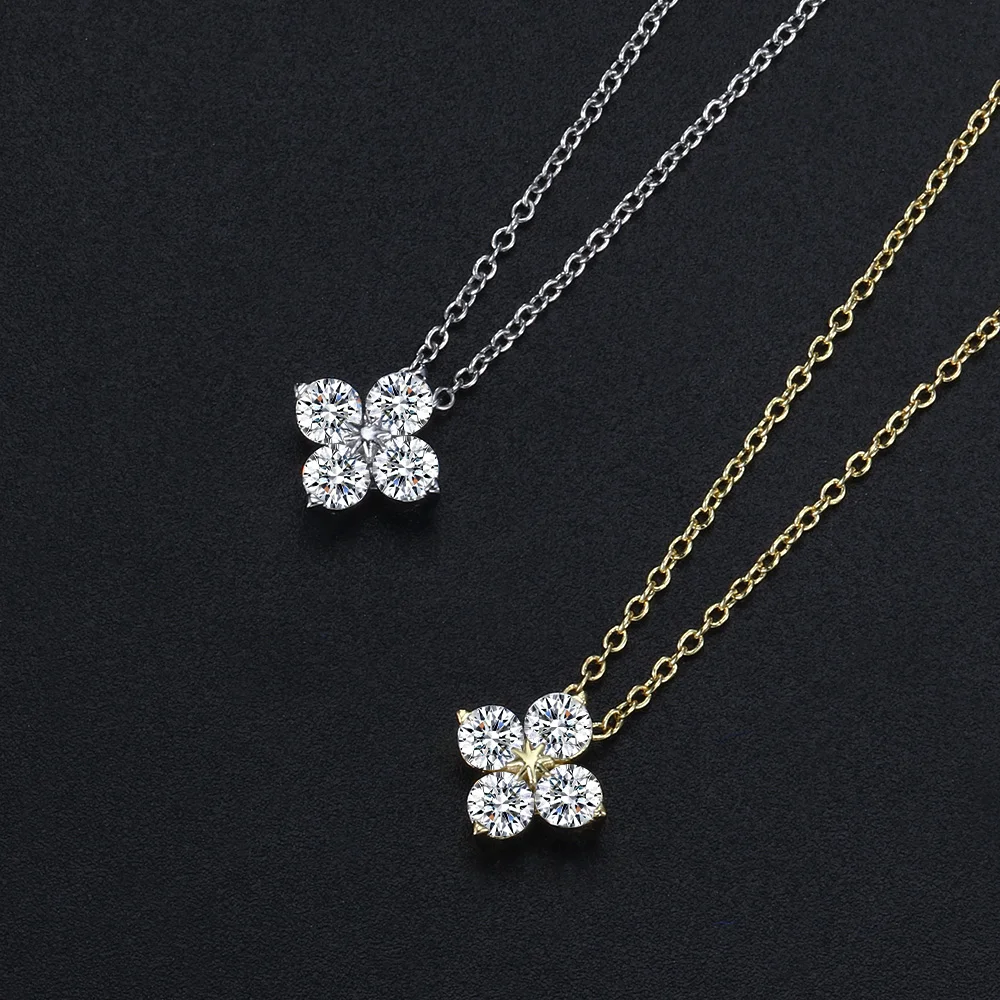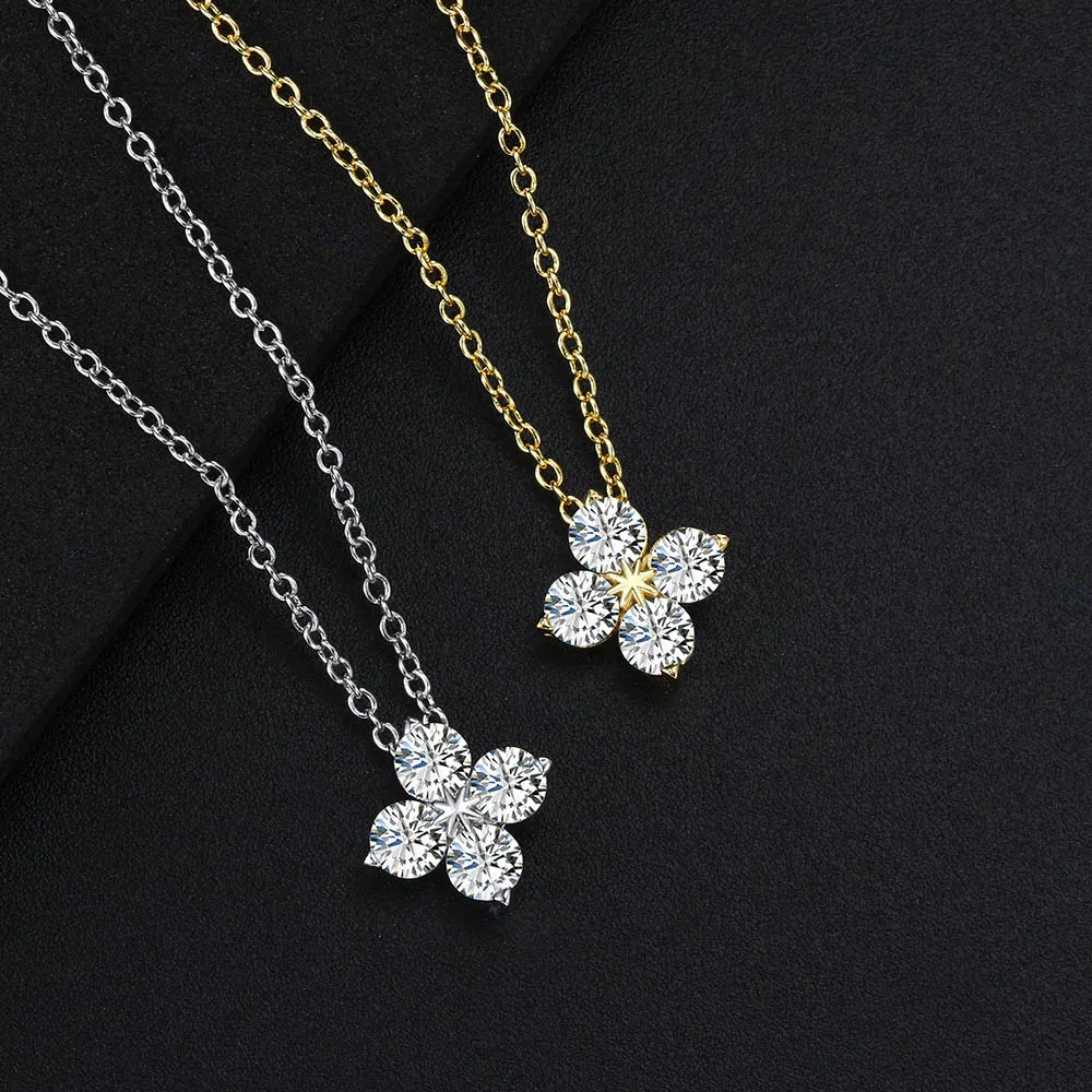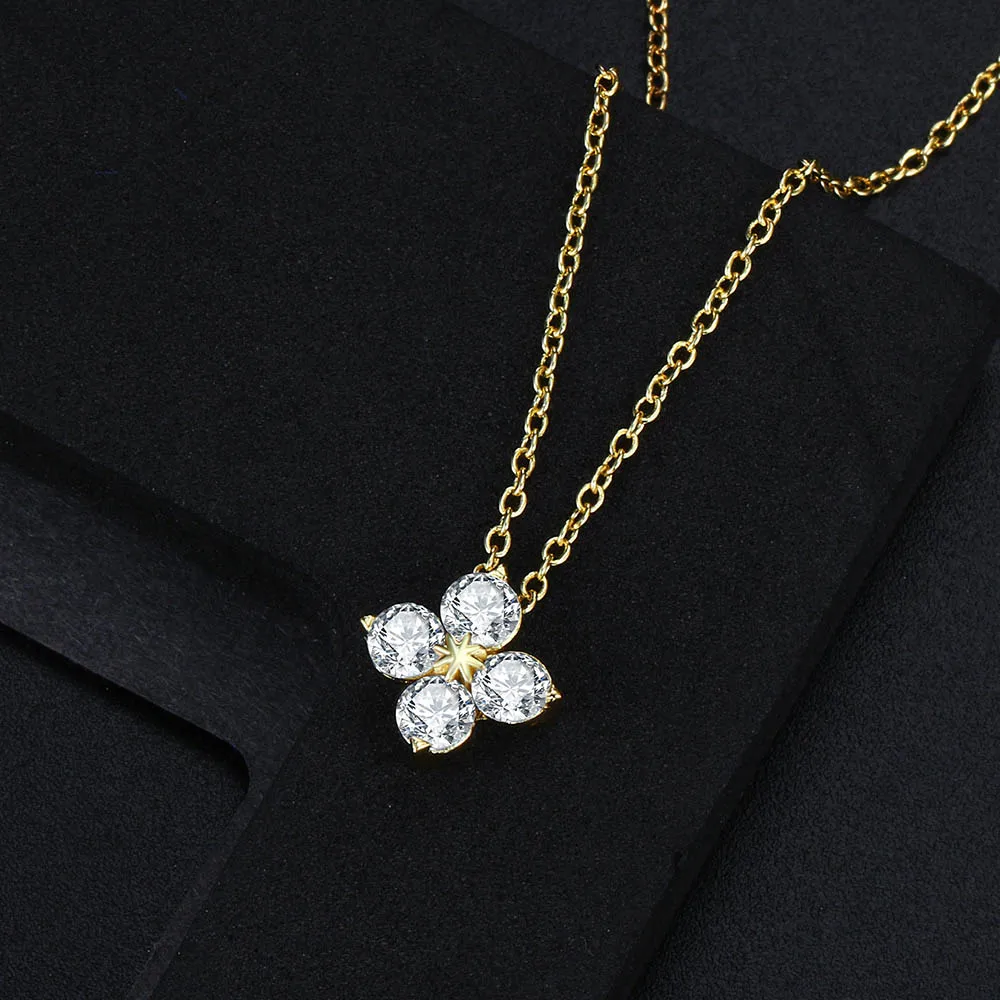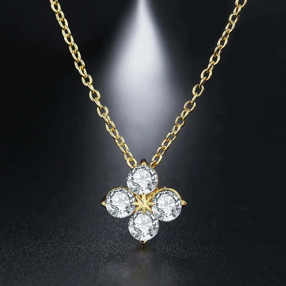 Women's Neck Chain Simple Daily Crystal Flower Pendant Necklaces Gold Color Chokers Birthday Gift For Girls Fashion Jewelry N087