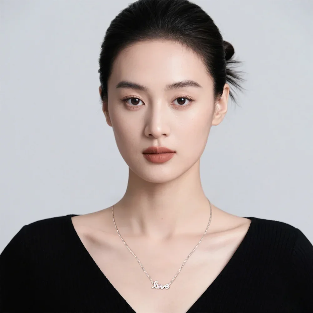 Women's Necklace 925 Silver Love letter Lucky Symbol Choker Necklaces Fit Women Fashion Anniversary Birthday Jewelry Gift