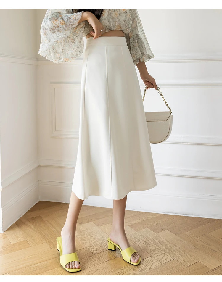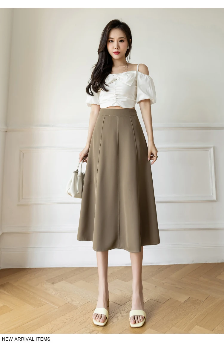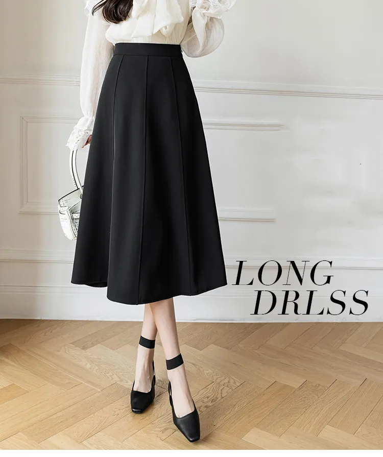 Women's Skirt 2025 Spring Women High Waist Solid Vintage Girl's Waist Down Skirt Knee-length A-line Fashion Thin Skirt for Women