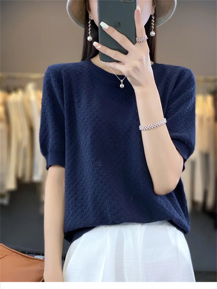 Women's T-shirt Summer 100% Cotton Sweater Short Sleeve Solid Color Round Neck Ladies Tops Loose Blouse Basic Pullover Tees