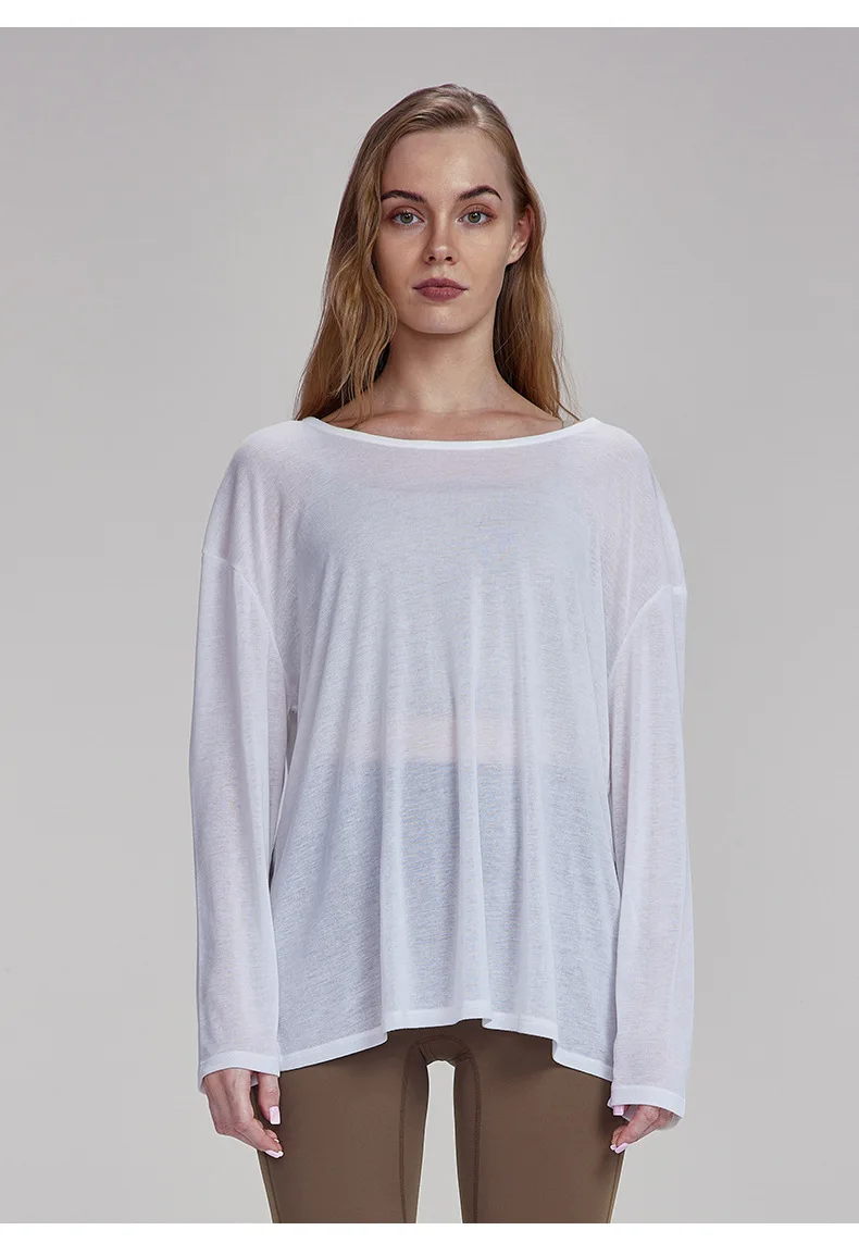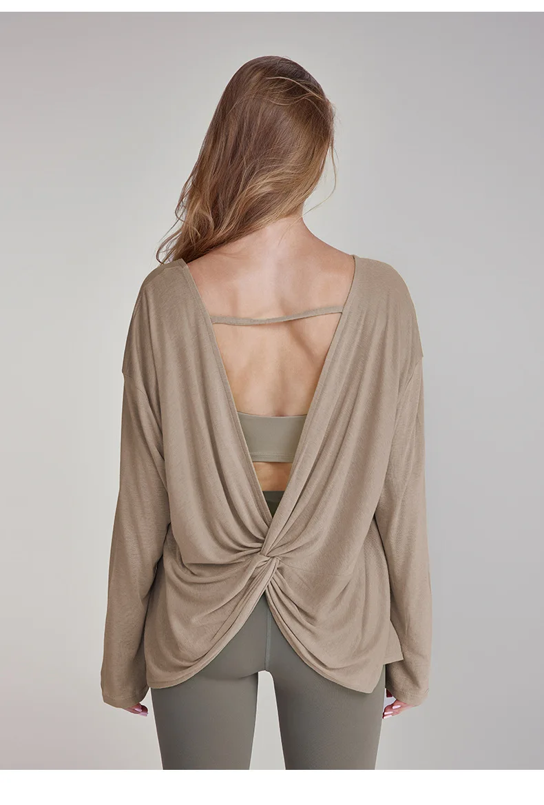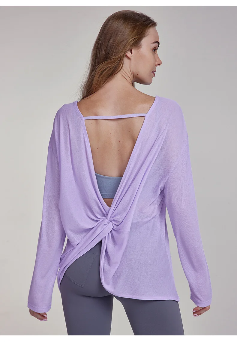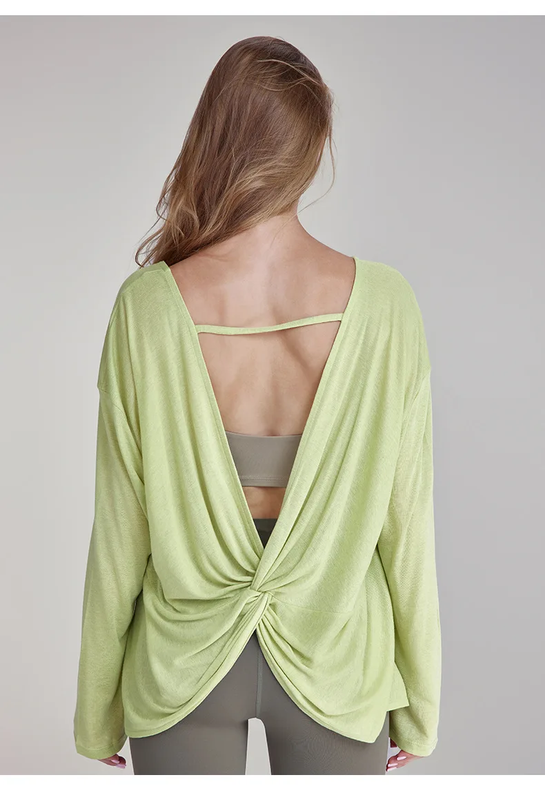 Women's Tops New Autumn Yoga Cover-up Loose Back Beauty Leisure Sports Fitness Top Light Breathable Long Sleeves Tee