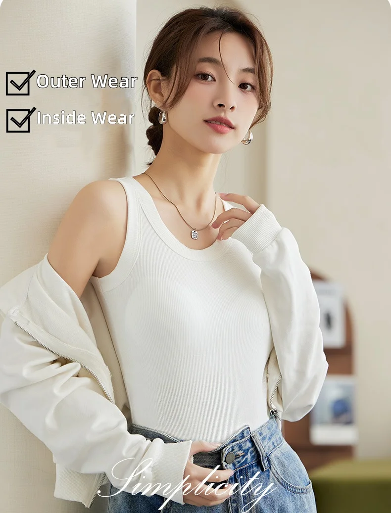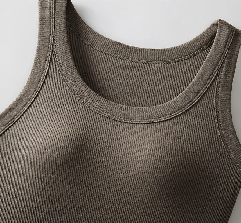 Women's Vest Tops With Built In Bra Neck Vest Padded Slim Fit Tank Tops Sexy Shirts Feminino Casual Underlay Shirt Slimming