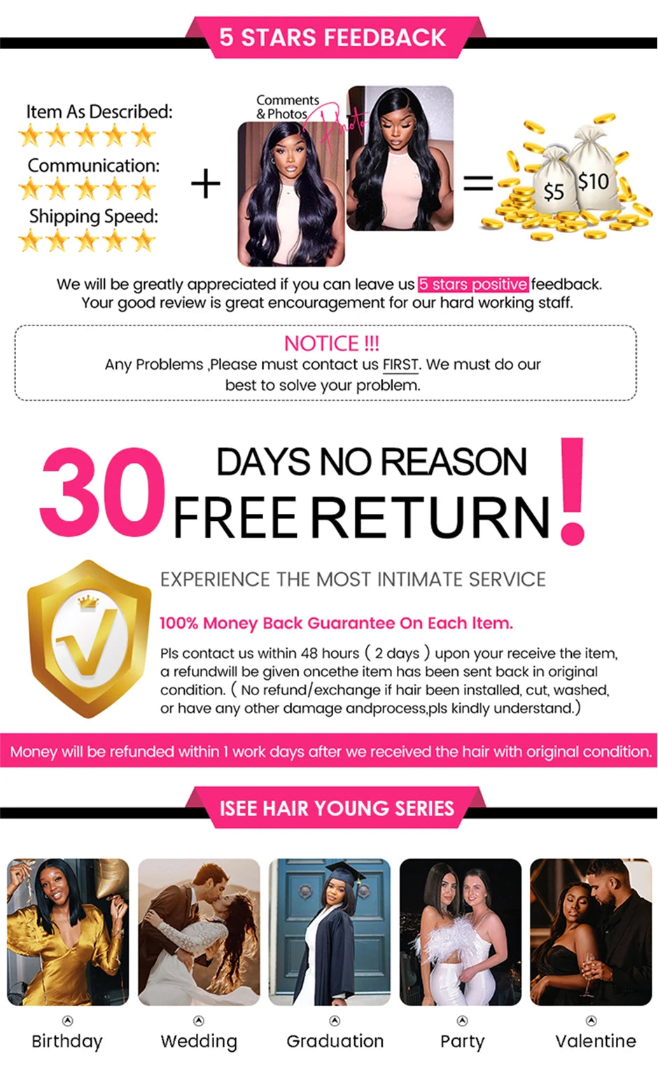 ❤️Q1. HAIR SMELL:Factory wash the hair with warm water and shampoo, and we will put hair oil to hairs before shipment,to keep hair original texture during longer term delivery.But smell will disappear after washing it with good shampoo and conditioner, please don't worry