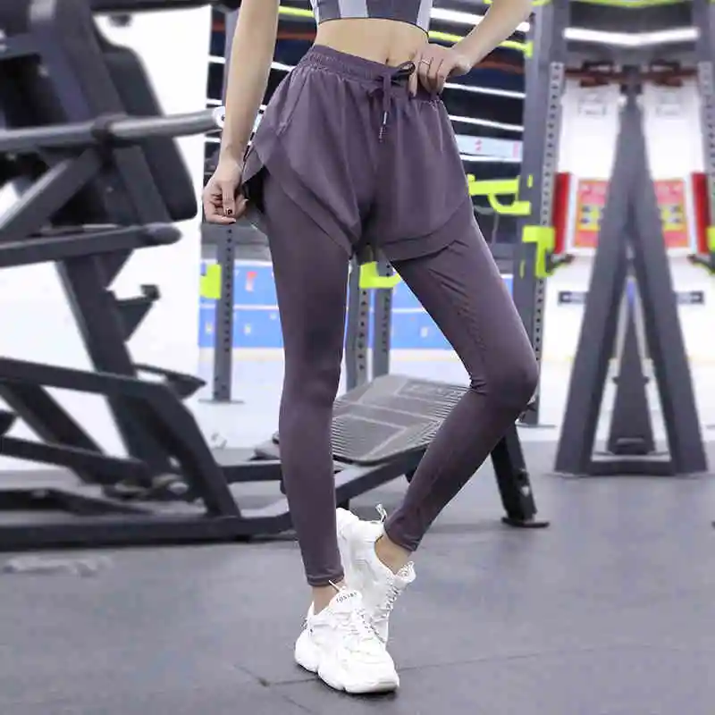 Yoga Pants Leggings Two-piece Skirt Style Quick-drying Workout Yoga Pants Women Pockets Sport Trousers Leggings