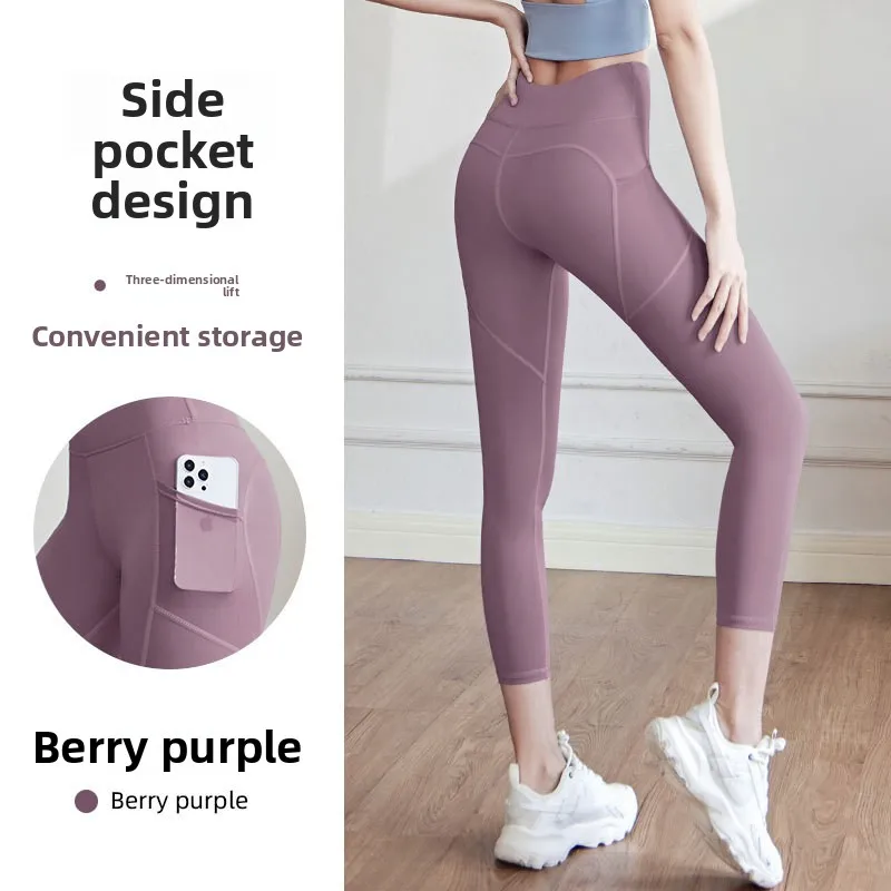 Yoga Pants Women High Waist Lift Hip Mesh Side Pocket Stretch Sports Leggings Running Yoga Clothing Fitness Pants